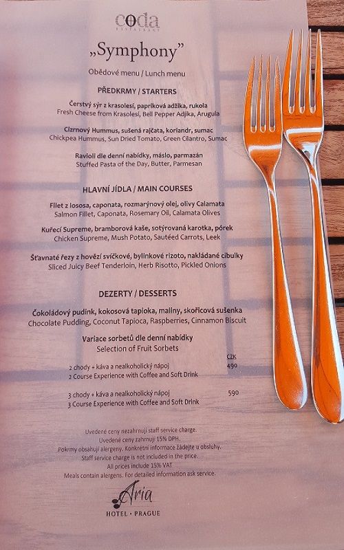 อาหารมี 2 ราคา คือ ราคา 490 CZK กับราคา 590 CZK