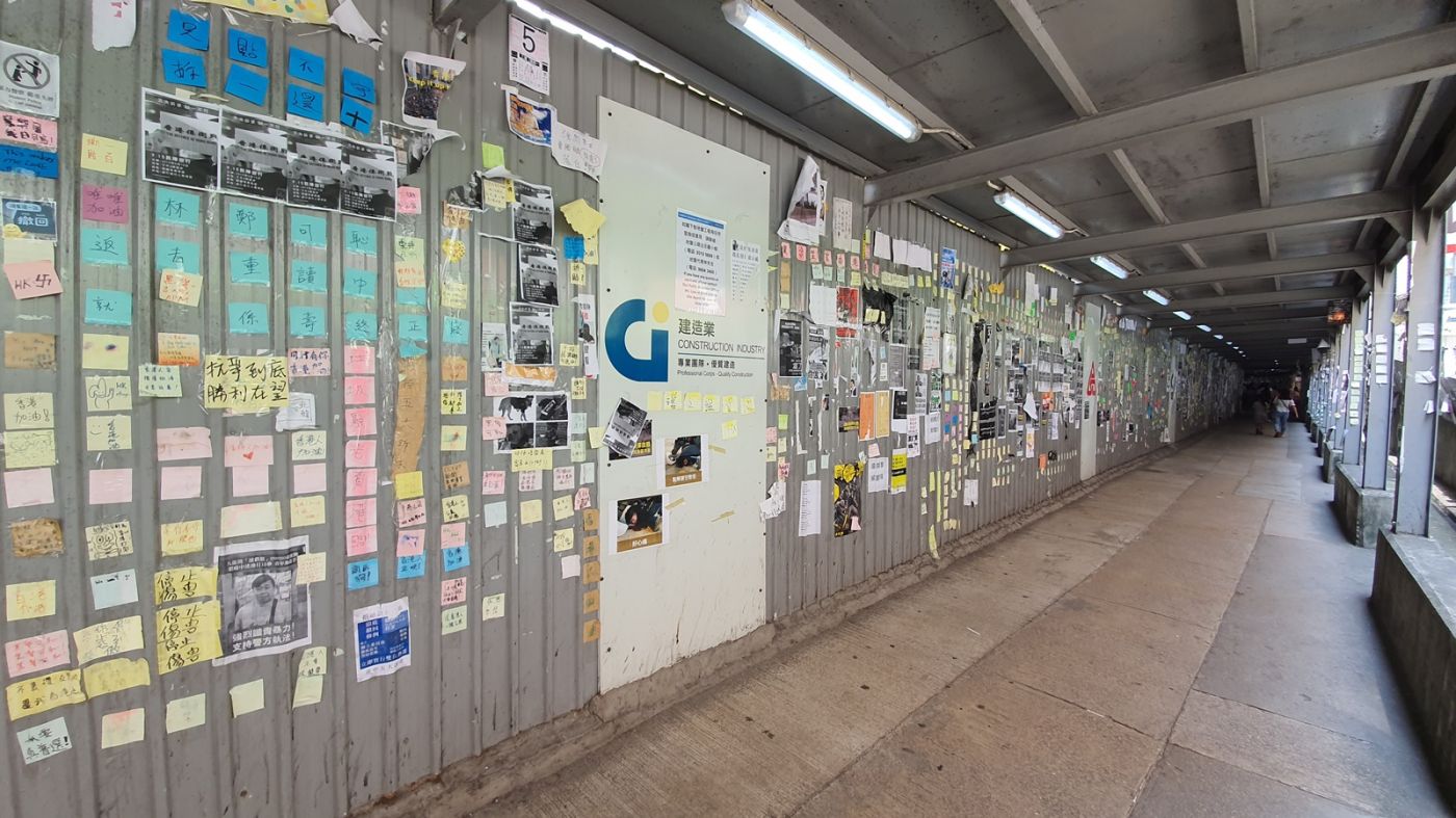 เดินมาเจอป้ายAmoy Plaza เลยรู้ว่าอยู่ผิดฝั่งซะแล้ว ต้องข้ามสะพานลอยอันเมื่อกี้เพื่อไปยังฝั่งของ MTRKowloon Bay และเดินต่อไปอีกจึงจะถึงโรงแรม ฉันตัดสินใจเดินย้อนกลับมา ระหว่างทางมองเห็นโพสอิทและกระดาษจำนวนมากติดอยู่บนสังกะสี พอสังเกตดูดี ๆเลยเห็นว่าเป็นข้อความที่เกี่ยวกับการประท้วงทั้งนั้น บางทีพื้นที่ตรงนี้อาจจะเคยมีม็อบก็ได้