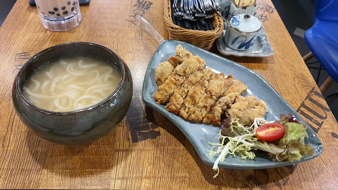 แปลกดีที่ร้านอาหารดูเป็นสไตล์ญี่ปุ่น แต่รสชาติจีน เค็ม ๆ มัน ๆ และในร้านเปิด KPOP ระหว่างเคี้ยวอุด้งกับไก่ทอดก็ได้ยินเสียงเพลงของG Friends กับ WannaOne