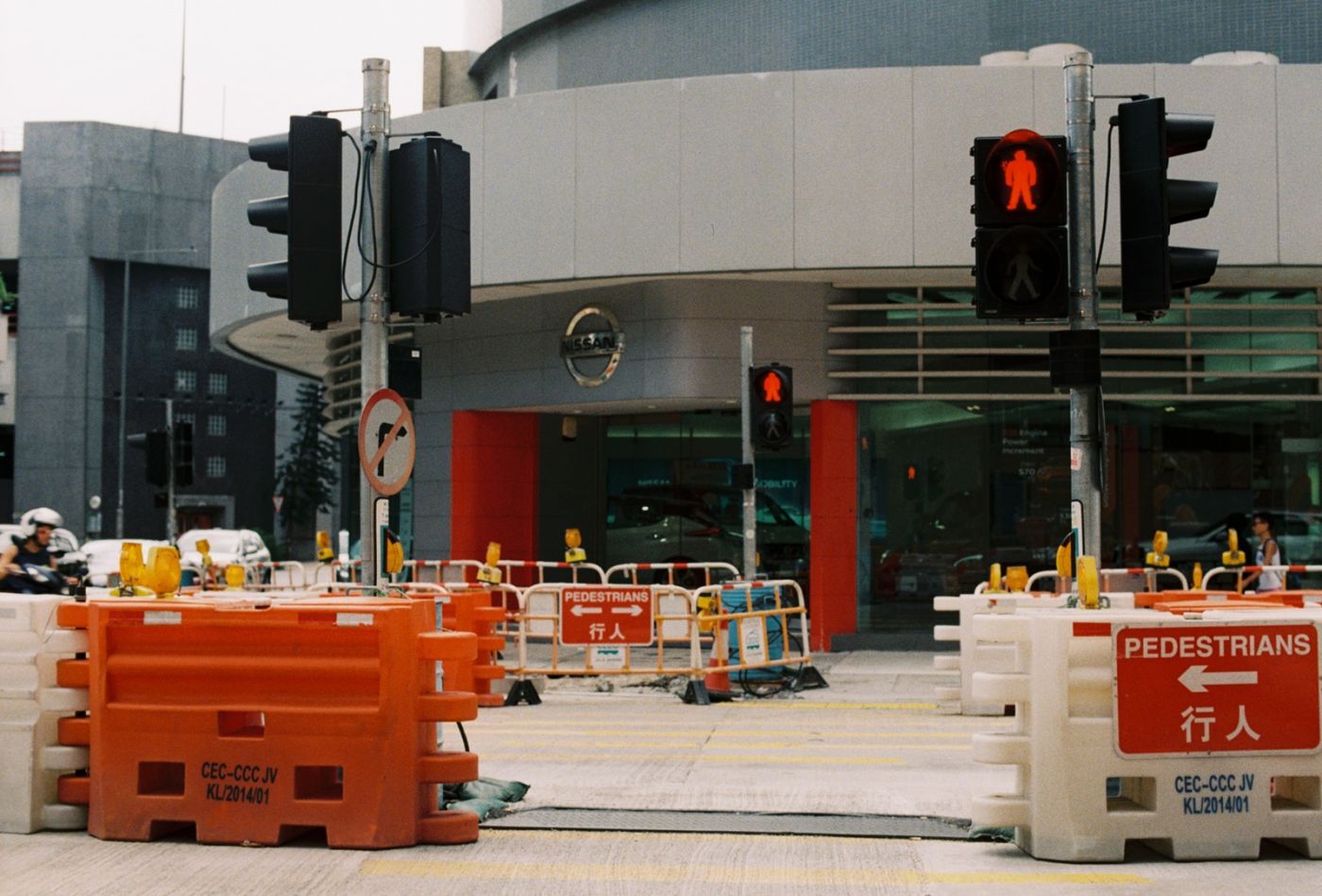 รถบัสจอดตรงป้ายKowloon Bay Station ฉันลากกระเป๋าลงมาแล้วมองซ้ายมองขวาอย่างไม่รู้ทิศทาง ตรงหน้าคือป้ายรถเมล์และมีสะพานลอยอยู่ใกล้ ๆมีแผงสังกะสีตีขึ้นกันเป็นแนวคล้าย ๆ กำลังก่อสร้างอะไรบางอย่าง เห็นผู้คนเดินไหลไปตามทางเดียวกันเลยตัดสินใจเดินไปดูอีกฝั่งว่าตรงนี้มันคืออะไร และฉันอยู่ตรงไหนของแผนที่