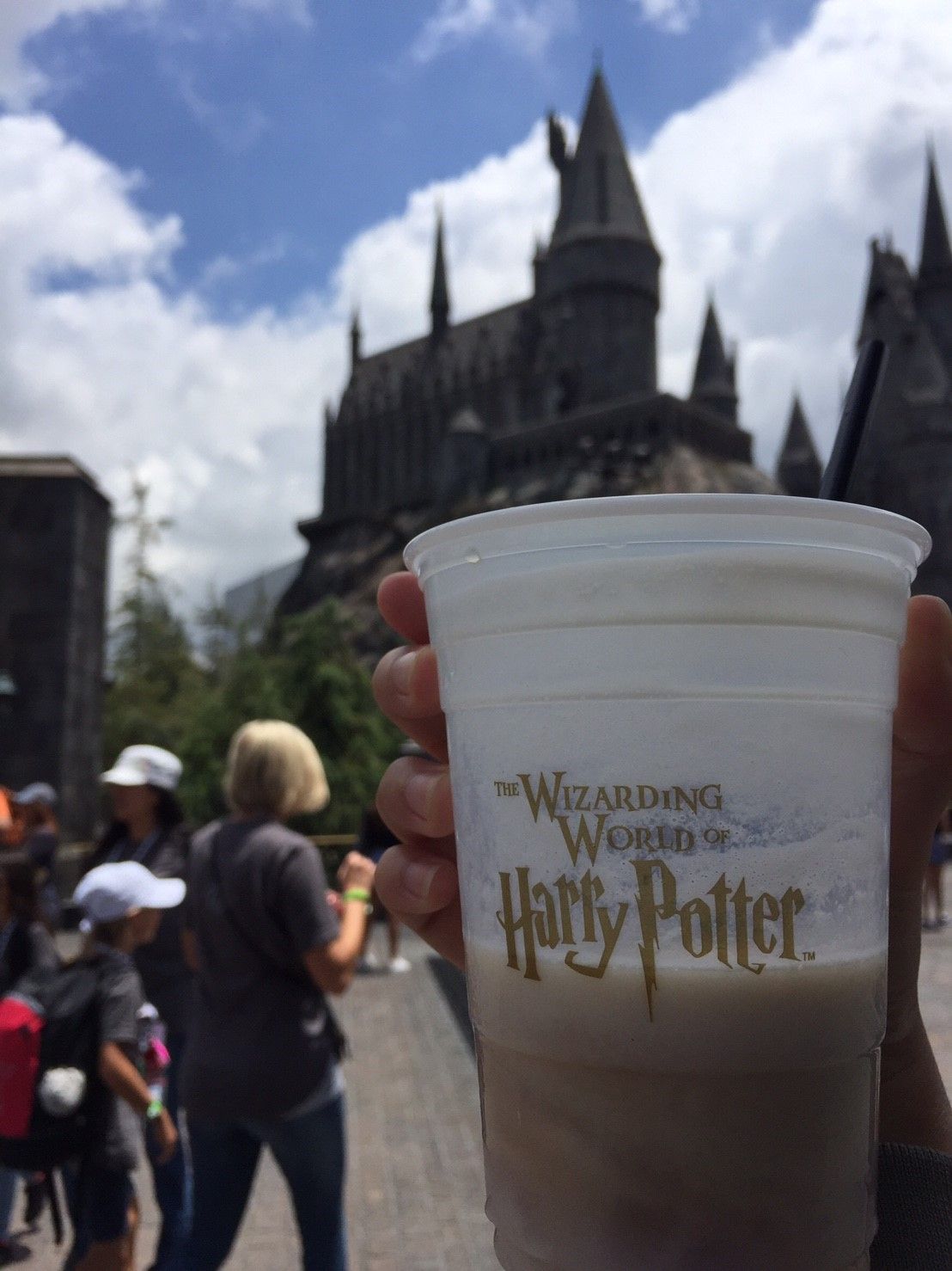 หลังจากนั้นโซนแรกที่เรามุ่งหน้าไปคือโซนแฮรี่พอตเตอร์ ซึ่งโซนนี้ทำได้สวยงามเหมือนในภาพยนตร์มากๆ จนเหมือนเราหลุดเข้าไปในภาพยนตร์เลยทีเดียว โดยเครื่องเล่นแรกที่เราไปเล่นคือร้านไม้กายสิทธิ์ โอลิแวนเดอร์ ซึ่งแถวยังไม่ยาวมากใช้เวลาต่อแถวเพียง 15 นาทีก็ได้เข้าไปเล่น โดยเมื่อเข้าไปพนักงานก็จะสุ่มผู้เล่นออกมาและเลือกไม้กายสิทธิ์ให้และให้ลองเสกคาถาแบบในภาพยนตร์เลย ซึ่งก็จะมีเอฟเฟคต่างๆเกิดขึ้น และเมื่อเสร็จออกจากห้องไปก็จะมีห้องขายไม้กายสิทธิ์แบบต่างๆซึ่งแน่นอนว่าต่างก็กระเป๋าแบนออกจากร้านกับหมด
