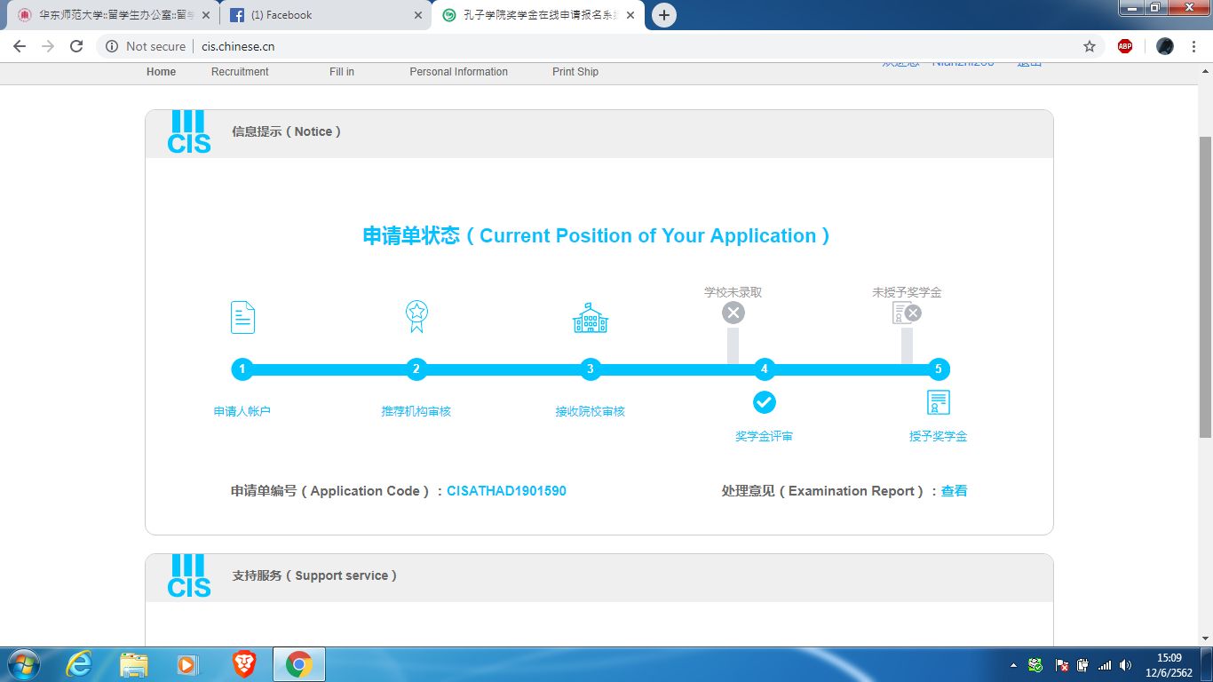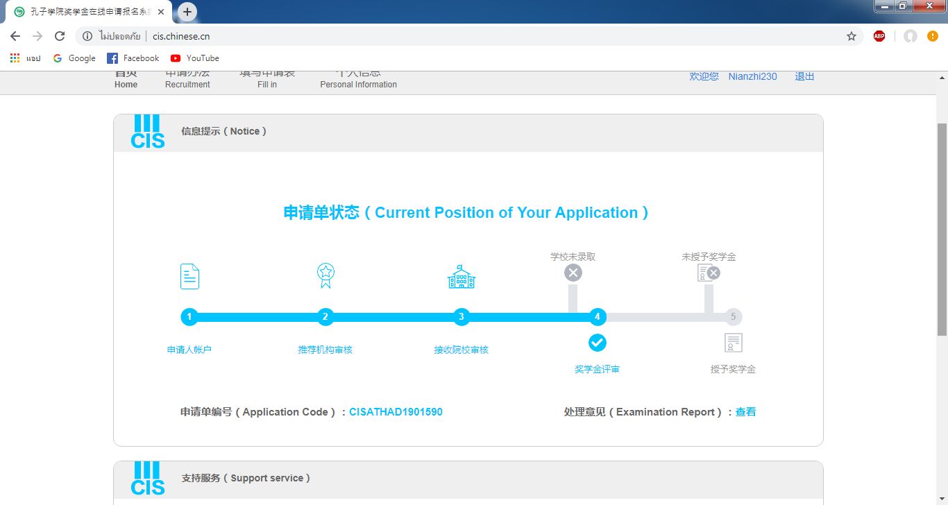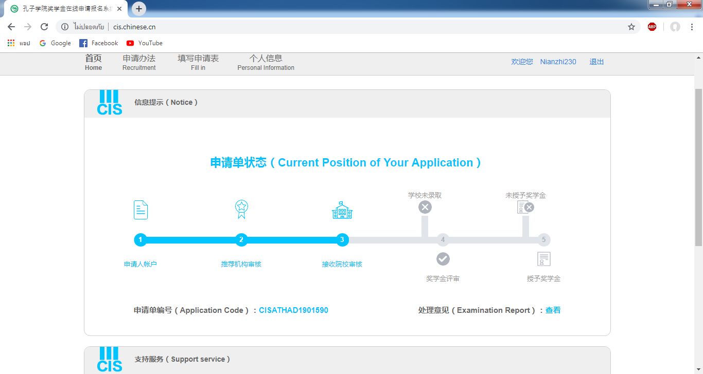 จากนั้นเข้าสู่ระบบดำเนินการขอทุน ( cis.chinese.cn ) เข้าไปกรอกข้อมูล เมื่อกรอกเสร็จ จะขึ้นหน้านี้