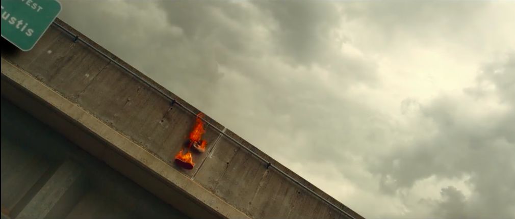 ตรงนี้เราว่าผกก ใช้สายฝนมาสร้างความรู้สึกกดดันในฉากเหมือนโลกถล่ม โดยเฉพาะฉากที่รถล่วงลงมาจากท้องฟ้าแทนสายฝนมันดูโลกถล่มลงมามากๆ ไม่รู้ว่าคิดไปเองรึเปล่า แต่ผกกเก่งมากที่เลือกใช้รถแทนฝน เพราะมันเป็นรถคันเดียวกันที่บ๊อบบี้ขับตอนกลางวัน รถที่เป็นตัวแทนของการหนีไป ตอนนี้แม้แต่สิ่งที่เป็นตัวแทนของอิสระก็กำลังถล่มลงมาใส่