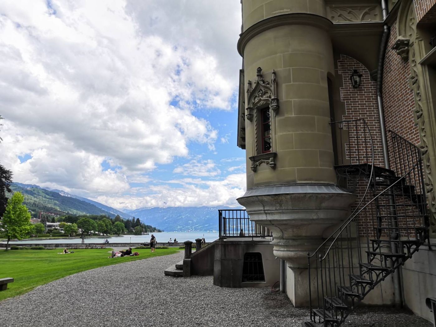 แต่เพียงแค่เรามีเวลาน้อย(ไม่อยากปีนปราสาท)จึงมุ่งหน้าไปดูอีกปราสาทนึงที่น่าสนใจไม่แพ้กัน เป็นปราสาทอิฐแดงที่มองไกลๆคล้ายสีชมพู ชื่อว่าSchadau Castle จากที่นี่จะสามารถมองเห็นวิวพานอราม่าของทะเลสาบท้องฟ้าและขุนเขาทั้งหลายแถบInterlakenได้ สวยเกินคำบรรยาย