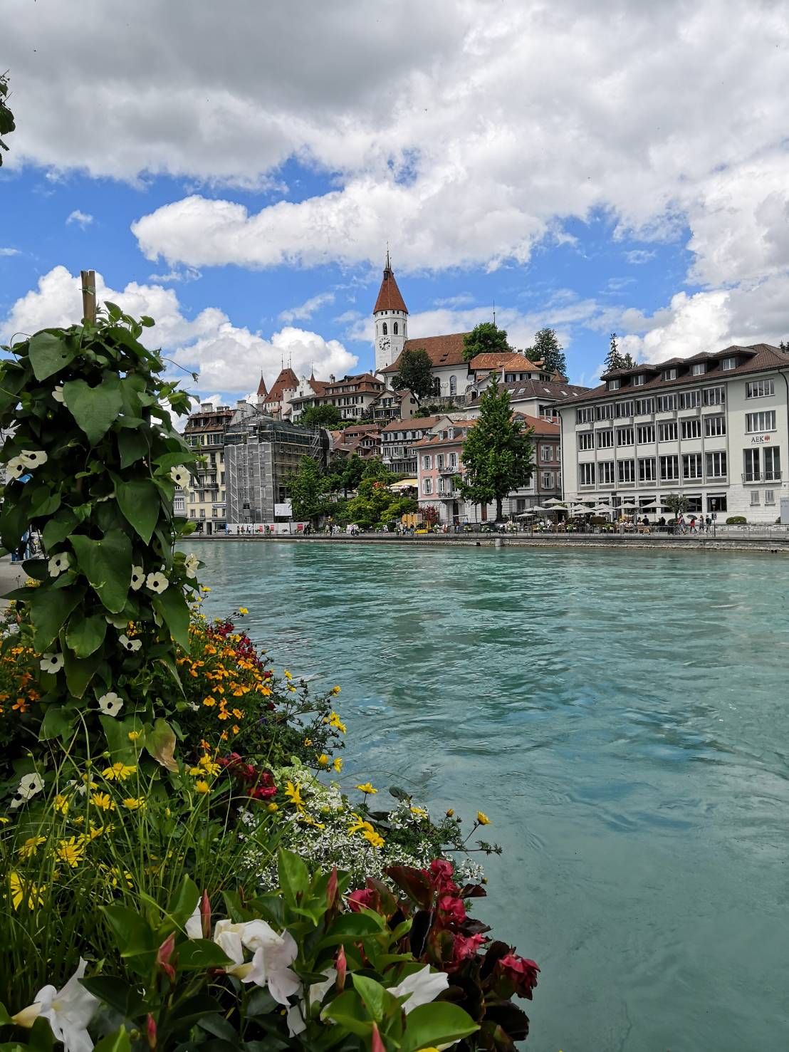 พอเดินออกมาจากสถานีเราก็จะเห็นสะพานไม้ของทะเลสาบThunอยู่ไม่ไกล งดงามคล้ายคลึงกับของลูเซิร์นแต่เล็กกว่า มีน้ำสีฟ้าเทอควอยซ์งดงามมองขึ้นไปจะเห็นปราสาทธูนสีขาวสะอาดตั้งอยู่บนเนิน ราวกับภาพปราสาทในเทพนิยาย