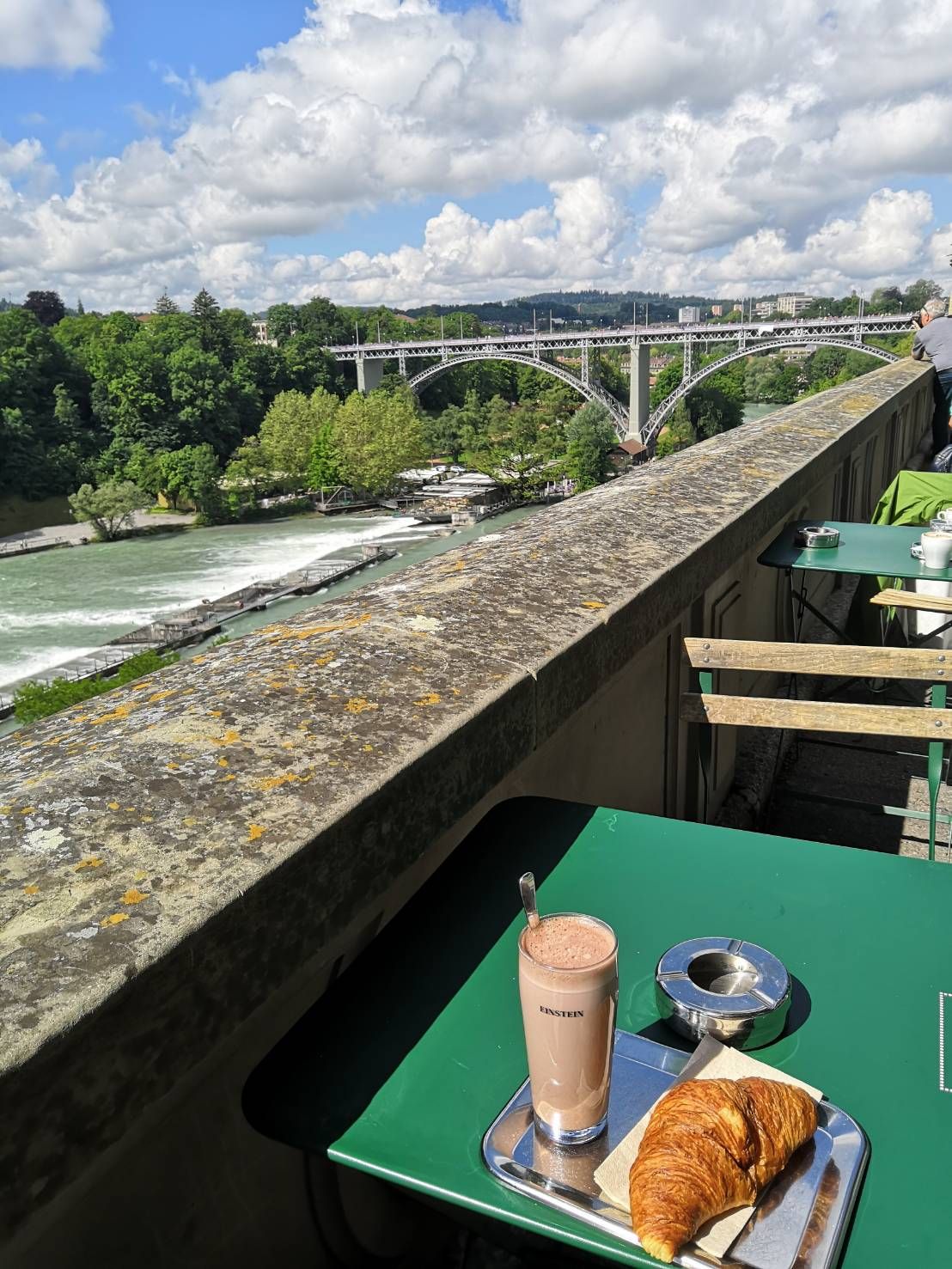 ด้านหลังจะมีสวนของโบสถ์อยู่สามารถไปนั่งจิบชากาแฟและครัวซองค์พร้อมชมวิวร้อยล้านของแม่น้ำAareกับสะพานKirchenfeldbruckeได้ อันนี้จัดแน่นอน