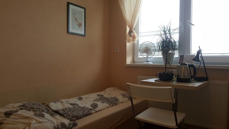 แต่น แตน แต๊น...เปิดประตูห้องเข้าไปจะพบกับเตียงเดี่ยวขนาดพอดีตัว 4 เตียง เรียงชิดกำแพง ฝั่งละ 2 เตียง ริมสุดของห้องมีหน้าต่างสีขาวบานโต พร้อมกับโต๊ะ เก้าอี้ โคมไฟ กาน้ำร้อน แก้วน้ำ พัดลม มีกระถางต้นไม้เล็ก ๆ ด้วยจ้า ให้ความรู้สึกมีชีวิตชีวาขึ้นมานิดนึง ???
