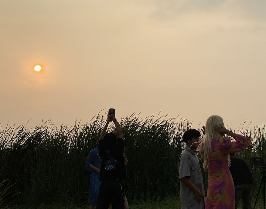 และสถานที่ในการถ่ายทำเซ็ตถัดไปคือทุ่งโล่งแจ้งย่านพระรามสอง เดิมที่เจ้าของพื้นที่เปิดให้เป็นสถานที่สำหรับตั้งแคมป์ปิกนิก ซึ่งพอเราเดินทางไปถึงก็พบว่าเป็นทุ่งโล่งๆ สมคำเล่าลือกับ แม้ว่าแดดจะไม่แรงมากแต่อากาศกลับร้อนอบอ้าวจนแทบจะเป็นลม