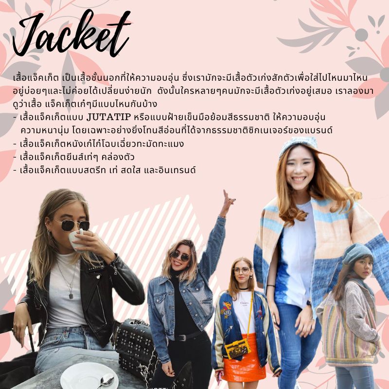 เสื้อแจ็คเก็ตเป็นเสื้อชั้นนอกที่ให้ความอบอุ่น ซึ่งเรามักจะมีเสื้อตัวเก่งสักตัวเพื่อใส่ไปไหนมาไหนอยู่บ่อยๆและไม่ค่อยได้เปลี่ยนง่ายดังนั้นใครหลายๆคนมักจะมีเสื้อตัวเก่งอยู่เสมอ เราลองมาดูว่าเสื้อ แจ็คเก็ตเก๋ๆมีแบบไหนกันบ้าง
