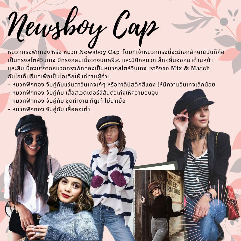 หรือภาษาต่างประเทศจะเรียกว่าหมวก Newsboy Cap เนื่องจากหมวกทรงนี้ได้รับอิทธิพลทางแฟชั่นาจากเด็กส่งหนังสือพิมพ์ในสมัยก่อนโดยที่เจ้าหมวกทรงนี้จะมีเอกลักษณ์นั่นก็คือ เป็นทรงสไตล์วินเทจทรงกลมเมื่อวางบนศรีษะ และมีปีกหมวกเล็กๆยื่นออกมาด้านหน้าและสืบเนื่องมาจากหมวกทรงฟักทองเป็นหมวกสไตล์วินเทจ เราจึงขอ Mix &Match กับไอเท็มอื่นๆเพื่อเป็นไอเดียให้แก่ท่านผู้อ่าน