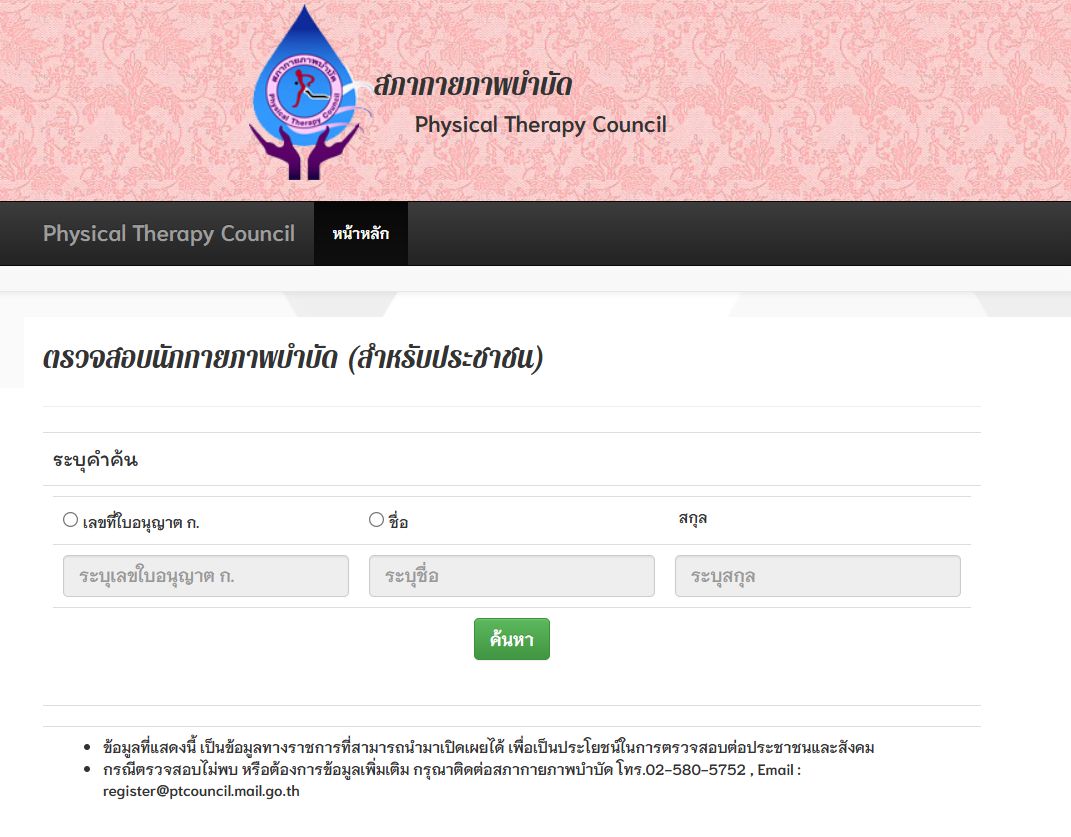 เว็บไซต์สภากายภาพบำบัด เช็ครายชื่อนักกายภาพบำบัด