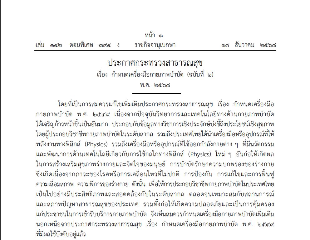 อ่านเต็มๆ  ประกาศเครื่องมือทางกายภาพบำบัด  หรือถ้ากลัวว่าเป็นลิงก์เถื่อนก็กูเกิ้ลก็ได้
