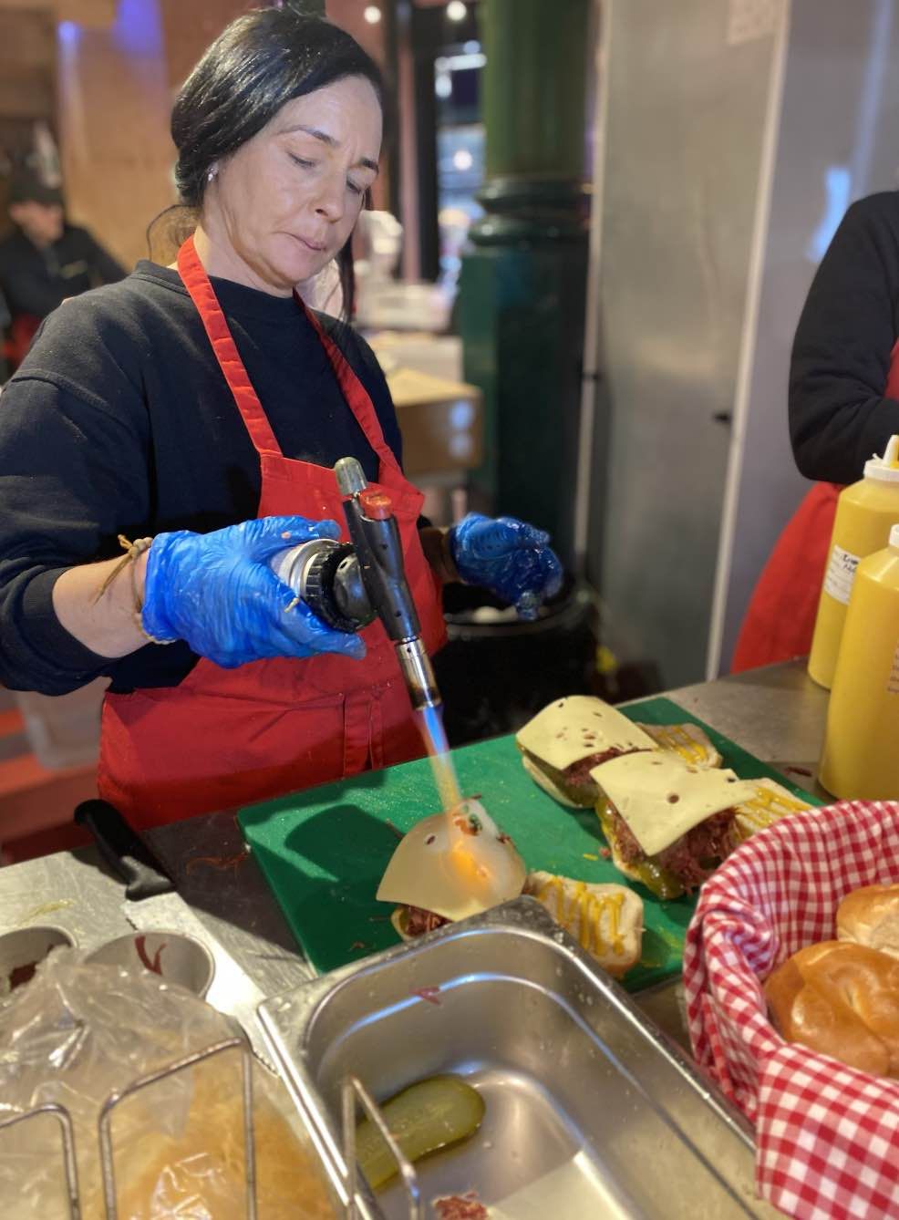 เห็นคนต่อแถวกินสิ่งนี้กันเยอะมาก ก็เลยไปต่อกับเขาด้วยค่ะ 555 เป็นเบเกิ้ลเนื้อเค็ม ตัวเนื้อดีมาก นุ่มมมมมไม่เหนียวเลย แต่เค็มสมชื่อเขาจริงๆ
