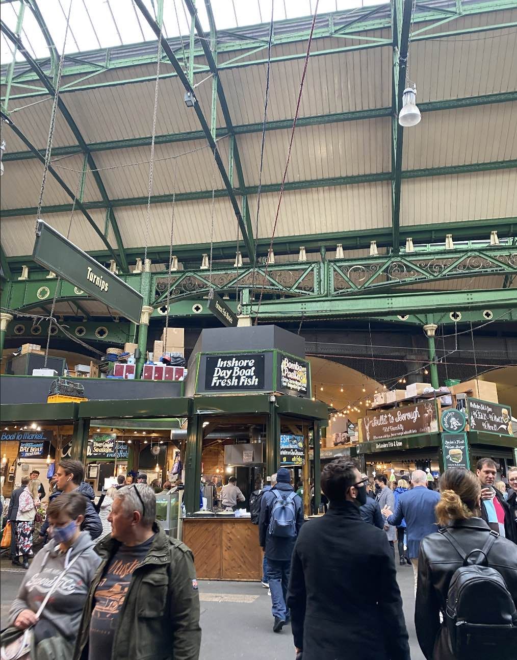พอเดินเสร็จก็ถึงเวลาอาหารกลางวันพอดี พวกเราเลยเดินไปที่ Borough marketกันต่อ เป็นคล้ายๆตลาดของสดบ้านเรา จะมีของขายเยอะแยะเต็มไปหมด รวมถึงของกินด้วย