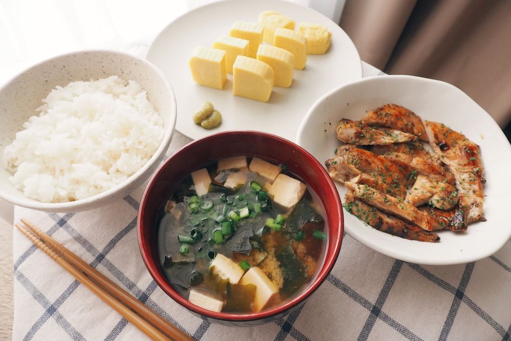 มาถึงตอนเช้าเข้าครัว ทีแรกว่าจะกินแค่ไข่หวานกับซุปมิโสะ แต่ก็กลัวจะน้อยเกินไป (สันดานตะกละของแท้) เลยเอาอกไก่ที่หมักไว้ในตู้เย็นออกมาย่างสำหรับเป็นจานหลัก คือตอนหมักไก่นี่หมักแบบไทยมากนะ คือใส่กระเทียม พริกไทย รากผักชี 555 แต่เสือกเอามาย่างกับซอสเทริยากิ ระหว่างที่ย่างไก่บนกระทะ เราก็เอาน้ำใส่หม้อแล้วตั้งไฟ พอเริ่มร้อนก็ใส่เต้าหู้ กับสาหร่ายวากาเมะที่แช่น้ำจนบานแล้ว รอให้เดือด แล้วก็แยกประสาทมาพลิกด้านไก่ให้สุกทั่วถึง การทำอาหารสองเตานี่แม่งโคตรฝึกสติ จังหวะต้องดี ยิ่งพอทั้งสองเตาเกิดเดือด และสุก พร้อมกันนี่จะยิ่งโคตรลน นับถือแม่ครัว หรือพวกเชฟที่ต้องวิ่งทำสี่ห้าเตามาก พวกพี่คือยอดคน