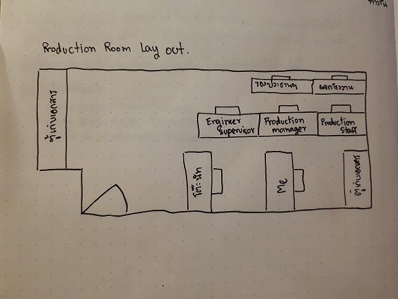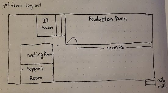 แผนผังในห้องทำงาน (จุดตรงตู้เอกสารข้างประตู คือจุดที่ชอบมีคนไปแอบ)