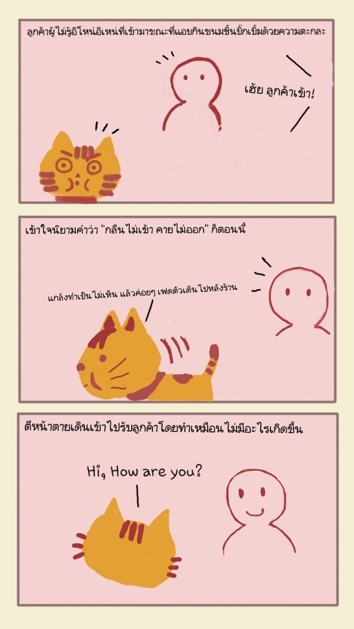 เพราะต้องแสดงให้ลูกค้าเห็นว่าเรากำลังติดภาระกิจอยู่ เลยยังเข้าไปให้บริการไม่ได้ บวกๆ กับหนูมองไม่เห็นพี่ด้วยนะคะ พี่รอหนูแป๊บ ใจเย็นเย็นนนนน