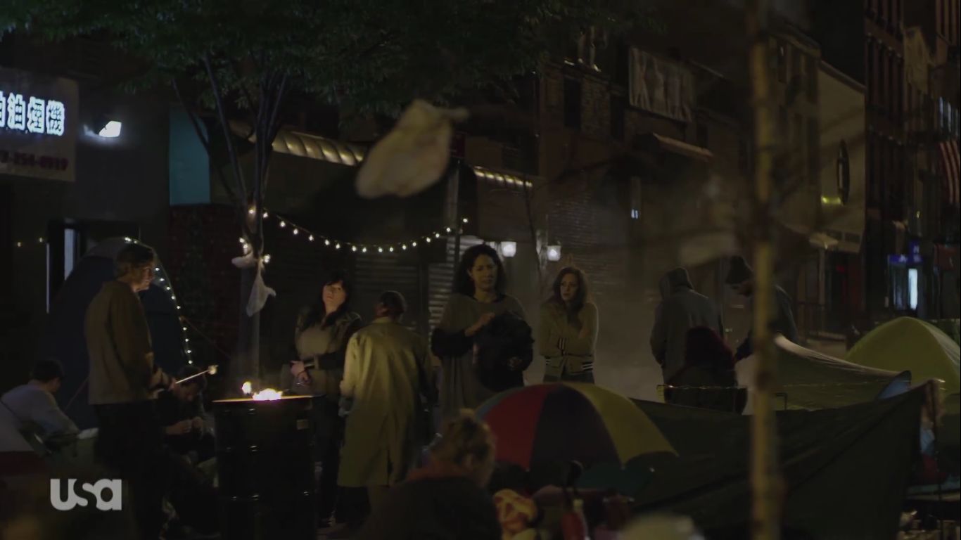 แน่นอนว่าฉากนี้้ต่อจากซีซั่นที่แล้วหลังจากที่เอลเลียตถูกยิง ไทเรลคงกำลังแพนิคจนหน้าตื่น ปฐมพยาบาลให้ตามประสา แต่ทำไมถึงเงยหน้าขึ้นมาทั้งที่ตอนนั้นอยู่กันสองคน ใครโผล่เข้ามา จะใช่ Irving รึเปล่า หรือว่าเป็นแองเจล่า