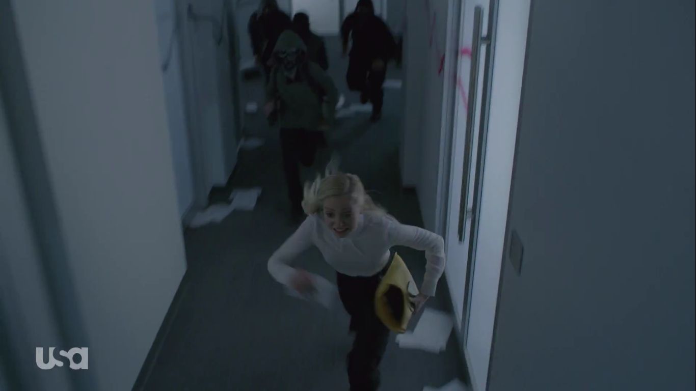 สรุปแล้วผู้หญิงใต้หน้ากาก fsociety คือแองเจล่า! และกำลังถูกไล่โดยแก๊งดาร์กอาร์มี่ ในมือถือซองเอกสารที่ข้างเหมือนเป็นกล่อง femtocell มากกว่าเอกสาร