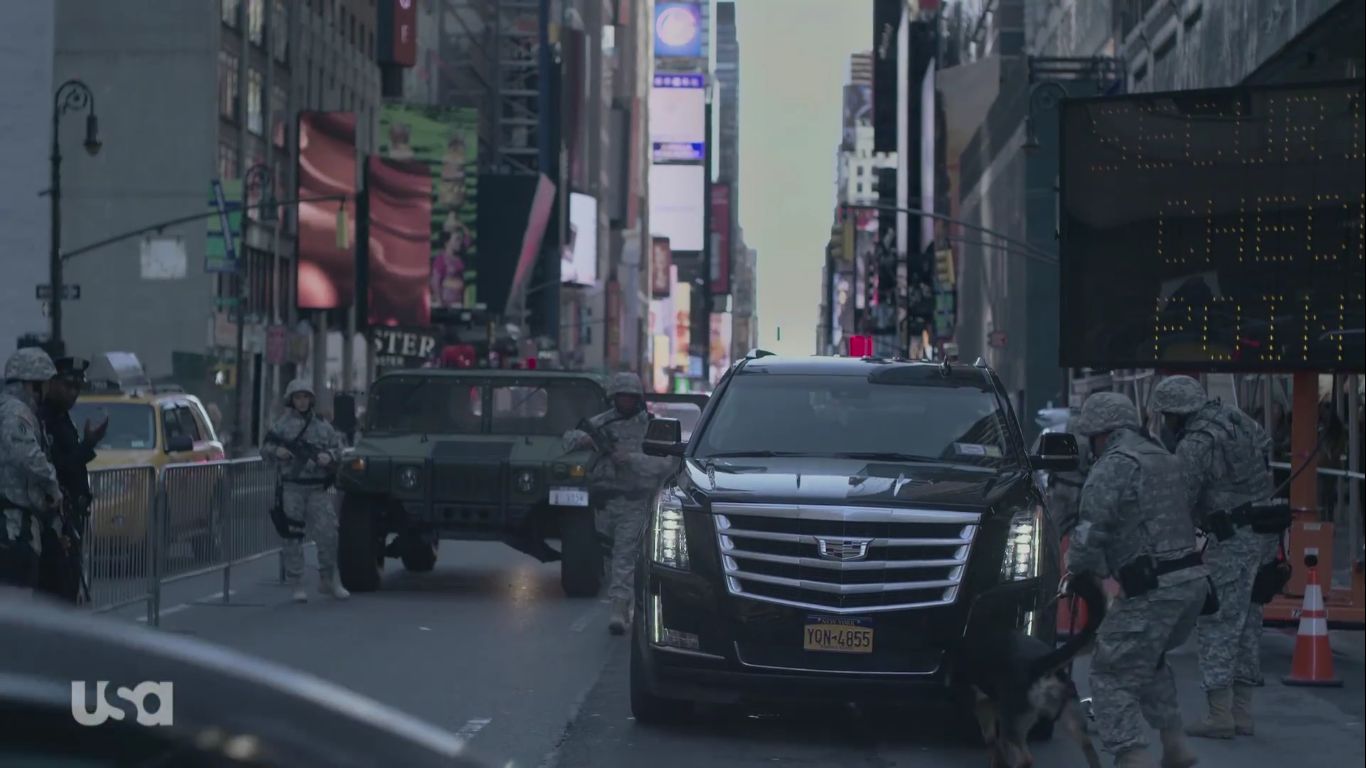 รถเอสยูวีของไทเรลกำลังผ่านด่านตรวจกลางนิวยอร์ก นี่อาจจะเป็นเหตุการณ์หลัง stage 2 รัฐบาลจั่วหัวว่าเป็นฝีมือของพวกก่อการร้ายจึงสั่งให้ทหารเข้าคุมเข้ม