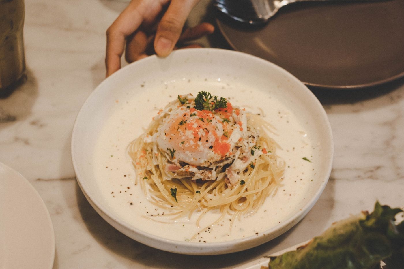 Crab Meat Cream Sauce Spaghetti w/ Poached Egg 320.-