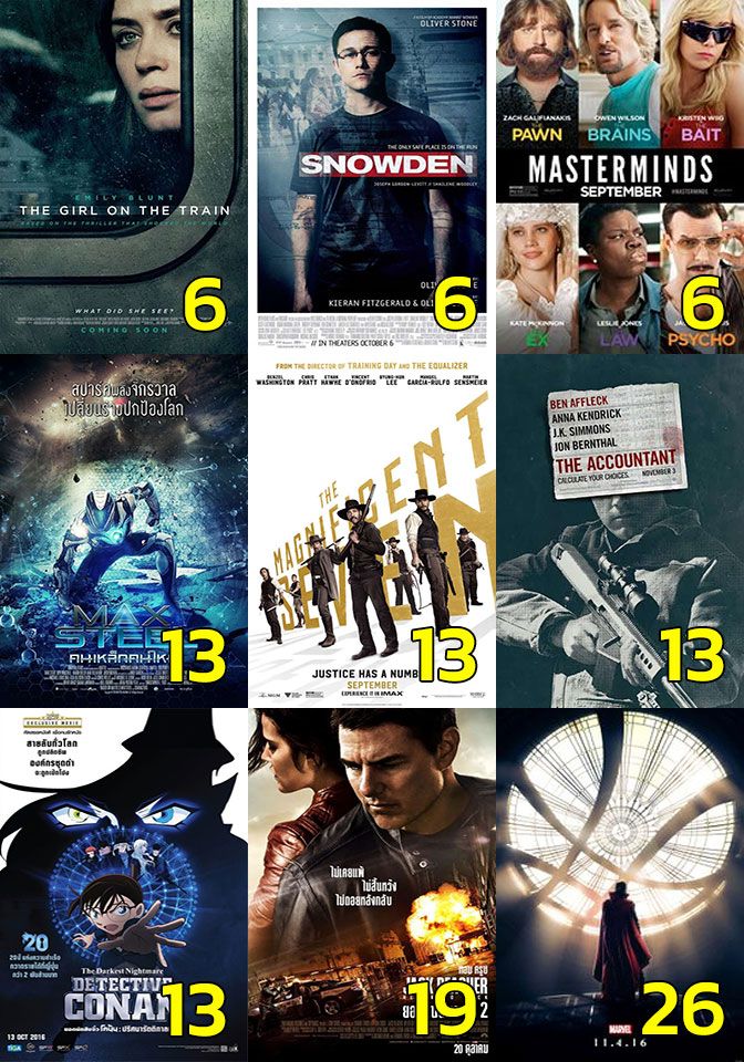 ภาพสรุปง่ายๆ วันที่เข้าฉาย หนังน่าดูเดือน ตุลาคม 2016