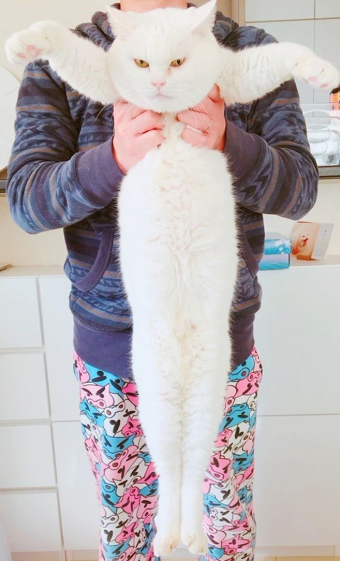เผื่อใครนึกภาพไม่ออก ถ้าอุ้มน้องแมวแบบในภาพลำตัวจะยืดได้ยาวขนาดนี้เลย!