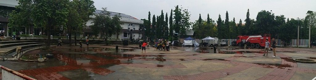 ในรูปภาพประชาสัมพันธ์ของ อมธ.(องค์การนักศึกษาแห่งมหาวิทยาลัยธรรมศาสตร์) แจ้งว่ากำหนดการนั้นเริ่มที่ 17:30 น. แต่ว่าเกิดเหตุไม่คาดฝันขึ้น พระพิรุณอยากสนุกด้วย เลยส่งฝนชุดใหญ่มากระหน่ำที่ มธ. จนทำให้งานนั้นต้องเลื่อนเวลาการเริ่มงานออกไป และเมื่อฝนหยุดตก ก็กลายเป็นสัญญาณการเริ่มต้นของความสนุก เด็ก ๆ จากโรงเรียนสาธิต ฯ หลาย ๆ คนเริ่มออกมาเล่นน้ำกันอย่างสนุกสนาน ขณะที่พี่ ๆ นักศึกษาเอง ยังไปเดินหาของกินกันที่ตลาดนัดอินเตอร์โซน