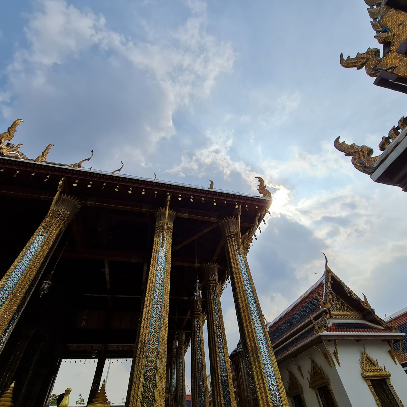ไหลตามฝูงชนเข้าประตูมา โอ้ เหมือนจะมีบางส่วนของวัดที่อยู่ระหว่างปรับปรุง แต่ในอารามที่พระแก้วมรกตประดิษฐานนั้นสามารถเข้าชมได้ปกติ เพียงแค่ว่า