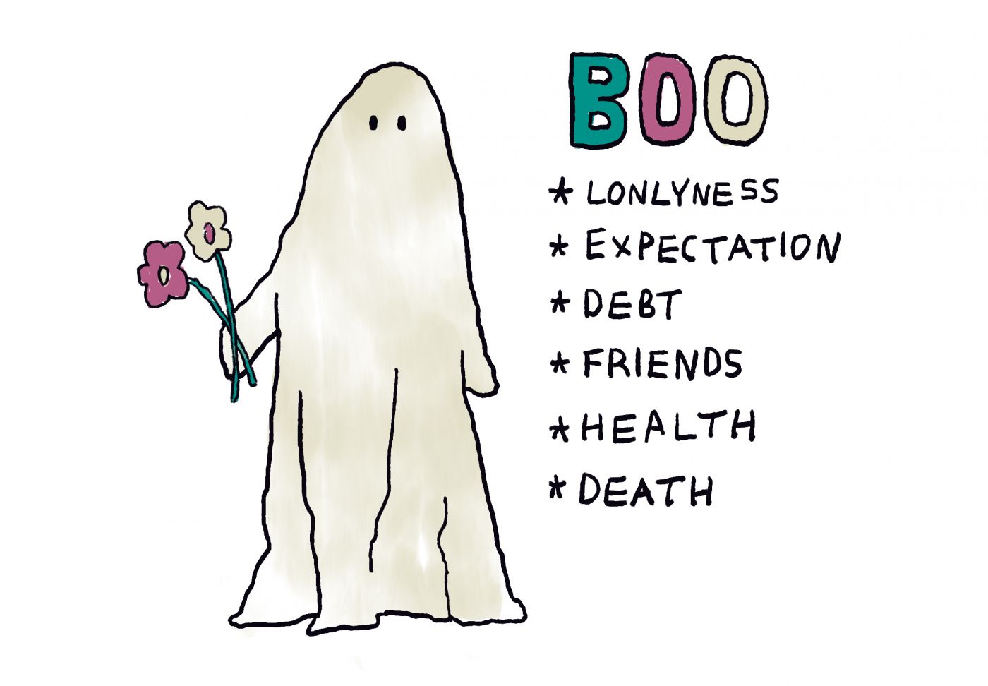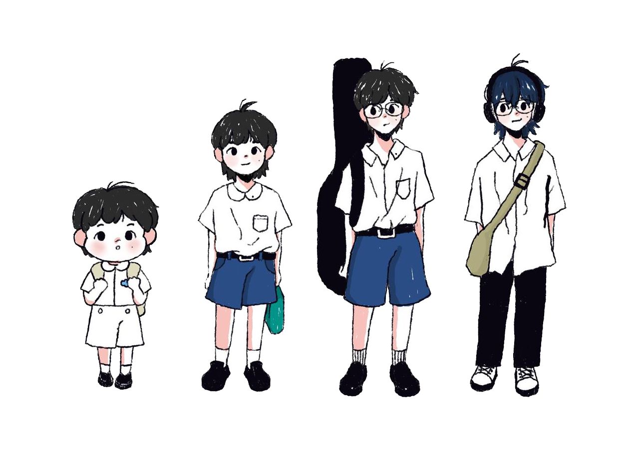 ส่วนต่อมาที่เราเลือกทำคือการออกแบบตัวละคร เป็นส่วนที่เราค่อนข้างถนัดแต่ก็ยากเหมือนกันเพราะเราตั้งใจให้มีตัวละครหลักดำเนินเรื่องเพียงคนเดียวและมีเหล่าผี ๆ ที่แทนวิกฤตในจิตใจที่ต้องเจอในแต่ละช่วงวัยเพื่อให้โทนเรื่องดูเหงาและโดดเดี่ยวมากขึ้น ในส่วนของตัวละครอื่น ๆ ที่มีบทบาท เช่น พ่อแม่ เพื่อน เจ้านาย เราจะใช้เป็นสัญญะแทน