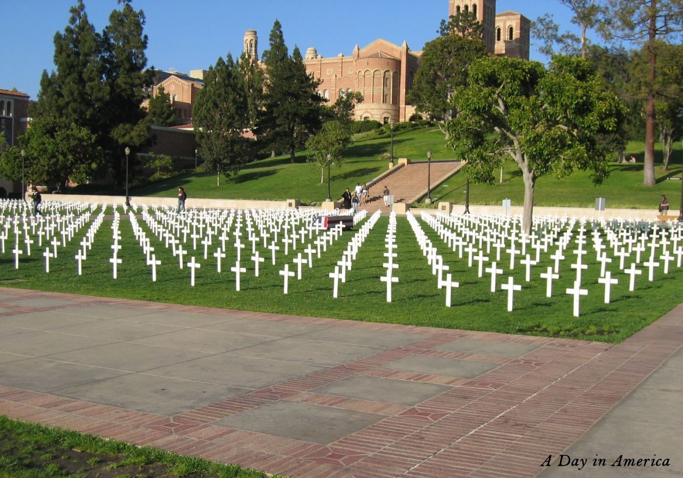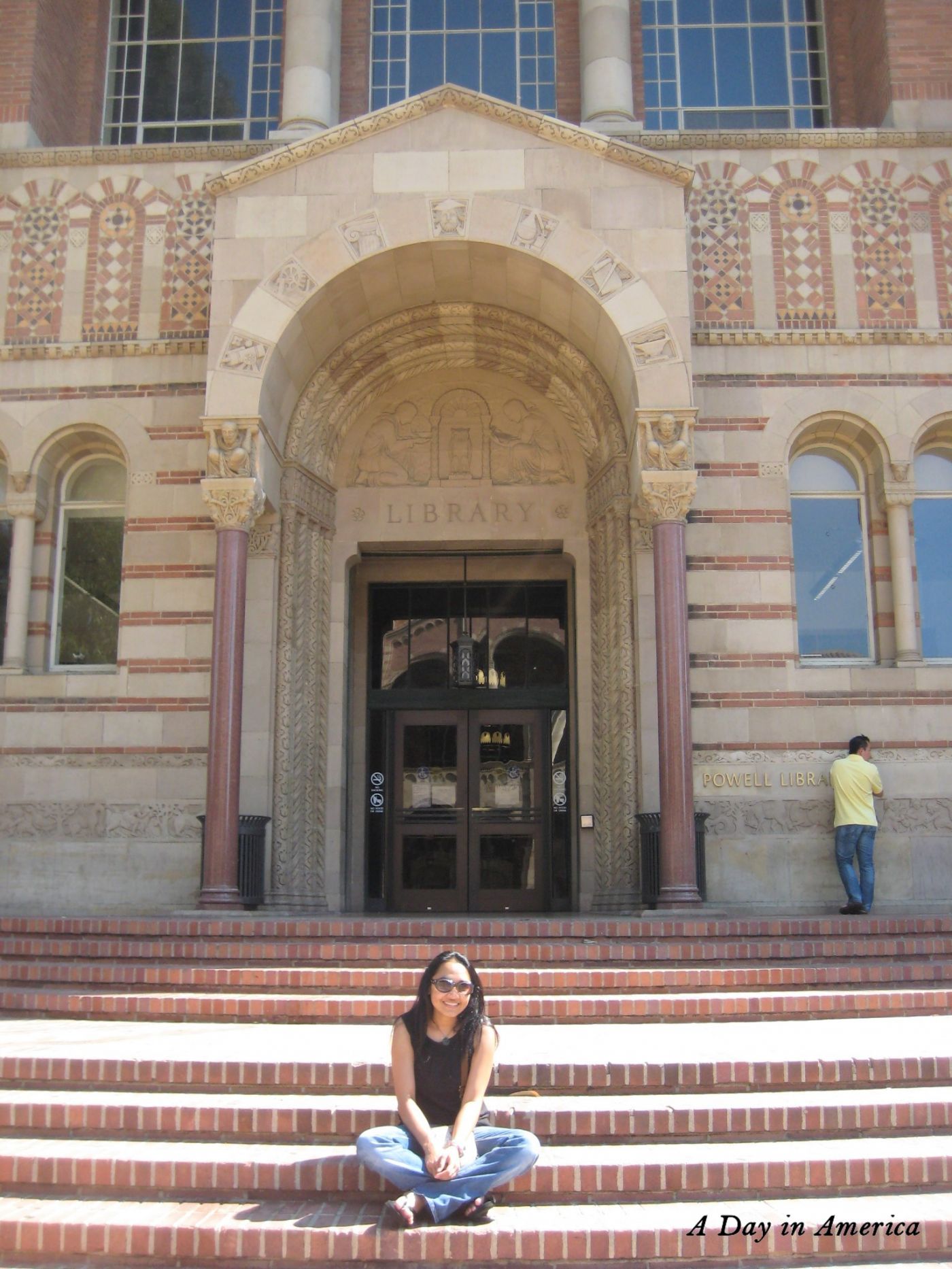 นั่งตากแดดยามบ่ายหลังจากอ่านหนังสือที่ Powell Library, UCLA