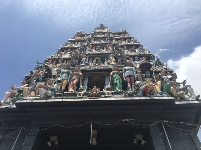 เติมพลังแล้วเราก็เดินดูของต่ออีกนิดหน่อย และก็แวะไปดูที่วัดของศาสนาฮินดูค่ะ พอดีได้ยินเสียงดนตรีเหมือนมีทำพิธี เลยรีบเดินเข้าไปเพื่อจะชมเป็นบุญสายตา และเป็นอีกประสบการณ์ที่เราไม่เคยเห็นมาก่อน ก่อนเข้าไปที่วัดจะมีการตรวจเครื่องแต่งกายนะคะ ทุกอย่างทั้งเสื้อ กางเกง กระโปรง ห้ามสั้นค่ะ และตอนเข้าไปตรงส่วนของกลางที่ทำพิธีและมีเทวรูปเยอะ ๆ ก็ห้ามถ่ายรูปนะคะ แต่ไม่เป็นไร ทุกสิ่งที่เราได้พบเจอ เราสามารถเก็บผ่านสายตาของเรา และบันทึกเป็นความทรงจำของเราตลอดไปได้เหมือนกันค่ะ แต่ก็ได้ถ่ายในส่วนด้านหน้า และรอบข้างนอกส่วนกลางมาค่ะ