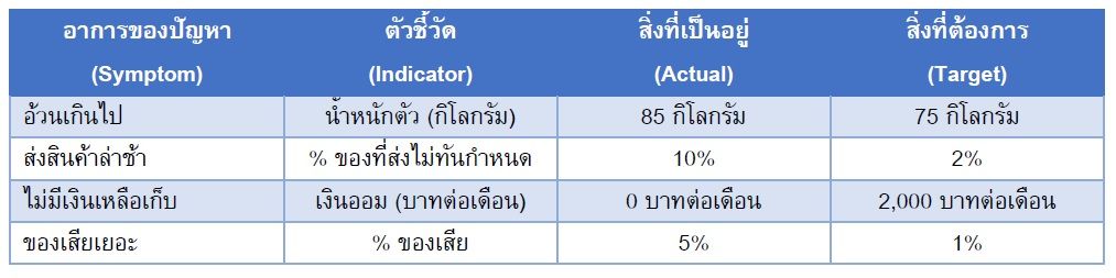 สิ่งเริ่มต้นในการแก้ปัญหาคือ ต้องระบุหัวข้อปัญหาให้ชัดเจน มีตัวชี้วัดที่เป็นรูปธรรมที่สามารถจับต้องได้