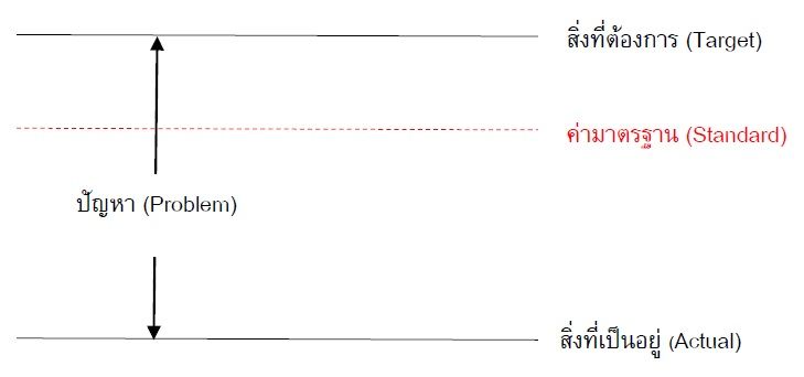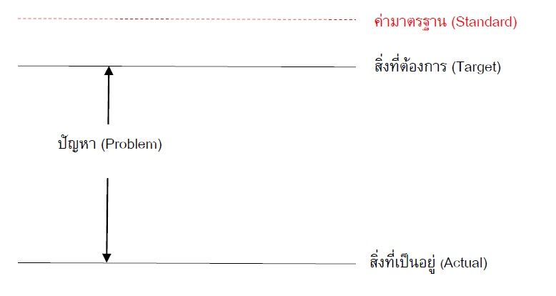 นิยามของคำว่า “ปัญหา (Problem)” คือ “ความแตกต่าง (Gap)” ระหว่าง “สิ่งที่เป็นอยู่ (Actual)” กับ “สิ่งที่ต้องการ (Target)” สามารถเขียนเป็นแผนภาพอธิบายได้ดังนี้