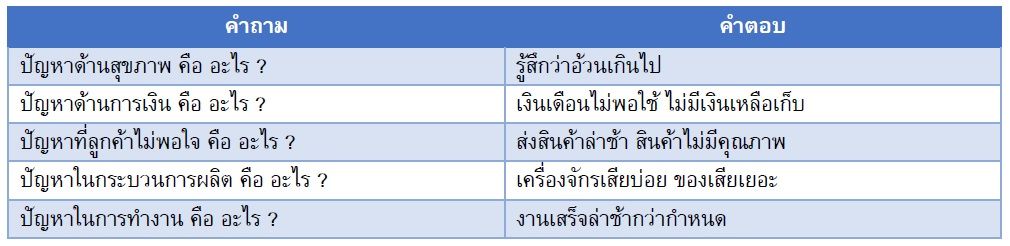 คำตอบที่มักได้ยินจากการตั้งคำถาม “ปัญหา คือ อะไร ?” “อะไร คือ ปัญหา ?” มักจะเป็น