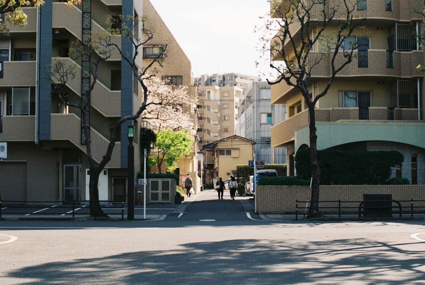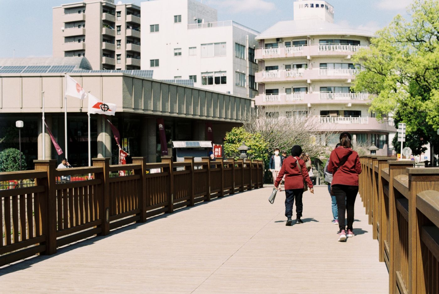 เดินกันได้ไม่นานก็เริ่มมองเห็นทะเลแล้ว  มีสถานี NHK ตั้งโดดเด่นอาบแสงสีทองยามเย็น  สีตึกดูเข้ากับแสงอาทิตย์และท้องฟ้าดีจัง