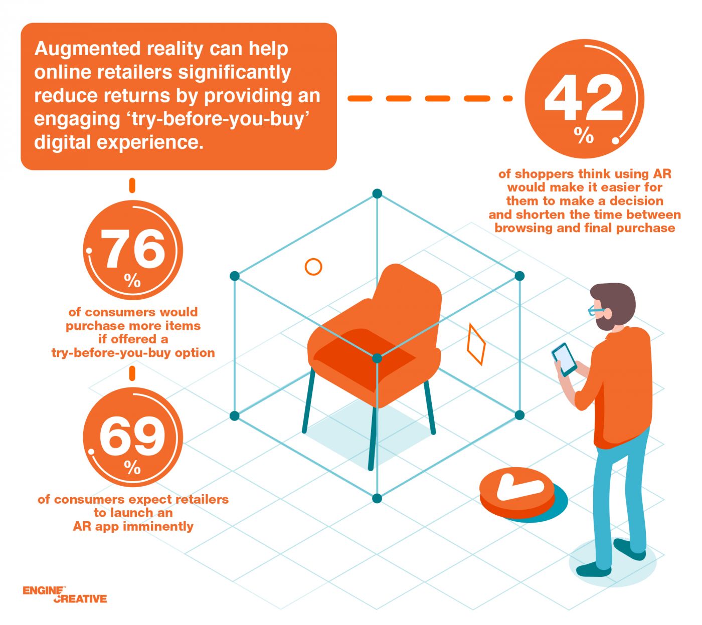 จากข้อมูลของ Manatt digital media การซื้อสินค้าต่างๆเริ่มเปลี่ยนแปลงจากการซื้อในร้านค้ามาเป็นช่องทางออนไลน์ รวมไปถึงการปรับใช้ ar เพื่อประสบการณ์ซื้อสินค้าออนไลน์ที่ดียิ่งขึ้น มีการคาดการณ์ว่า ar นั้นจะสามารถทำรายได้ถึง 120 พันล้านดอลลาร์สหรัฐในปี 2020 และ Manatt Digital media ยังได้ทำการสำรวจเกี่ยวกับวิธีการที่เหล่านักช็อปปิ้งใช้งาน Ar ในการซื้อสินค้า จาก 1,062 ผู้เข้าร่วม ในสหรัฐอเมริกา พบว่าผู้ซื้อรู้สึกสนุกในการใช้งาน ar ระหว่างการช็อปปิ้ง ผู้ซื้อได้มีส่วนร่วม ได้รับประสบการณ์ที่แปลกใหม่และน่าจดจำ รวมไปถึงยอดขายของธุรกิจค้าปลีกที่เพิ่มสูงขึ้นด้วย