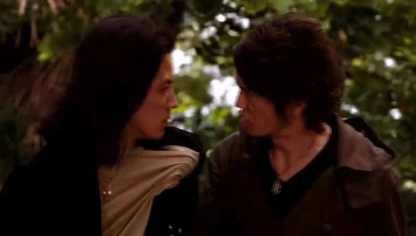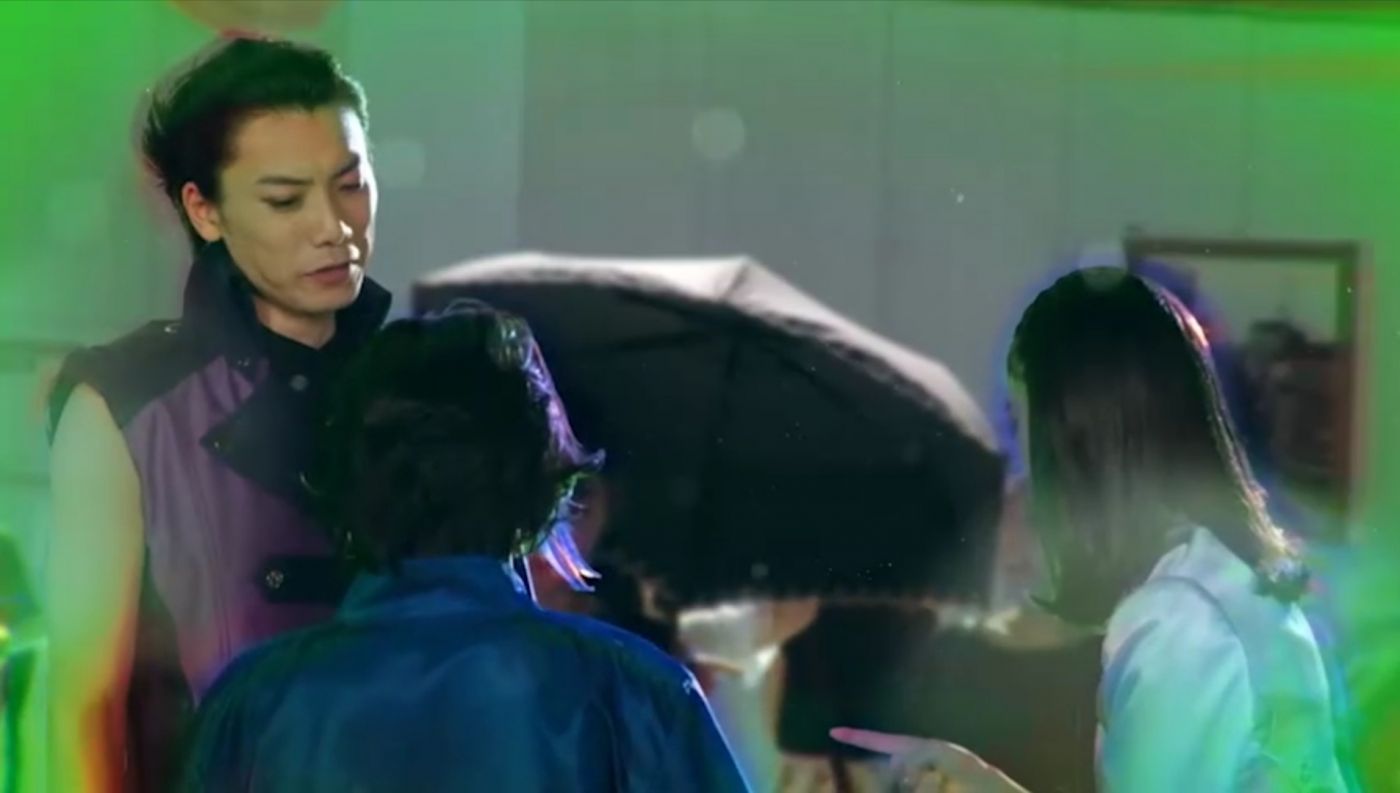 คุซากะ (Kaiza) ที่ตามคารินมาถึงสถานที่รกร้างแห่งนึง และพยายามจะเข้าทำร้ายเธอแต่ก็มีชายอีกคนรั้งไว้ อินุอิ ทาคุมิ (Faiz) นั่นเอง