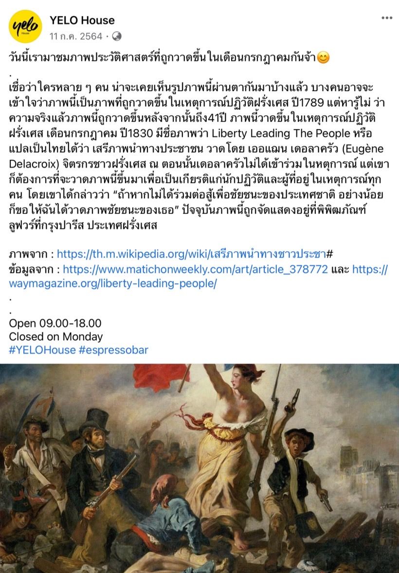 หรือในเดือนกรกฎาคม ก็จะเป็นภาพที่วาดขึ้นในเดือนกรกฎาคม ก็จะเป็นภาพวาดที่มีชื่อว่า Liberty Leading The People ที่วาดขึ้นในเหตุการณ์ปฏิวัติฝรั่งเศส เดือนกรกฎาคม ปี1830 นั่นเอง