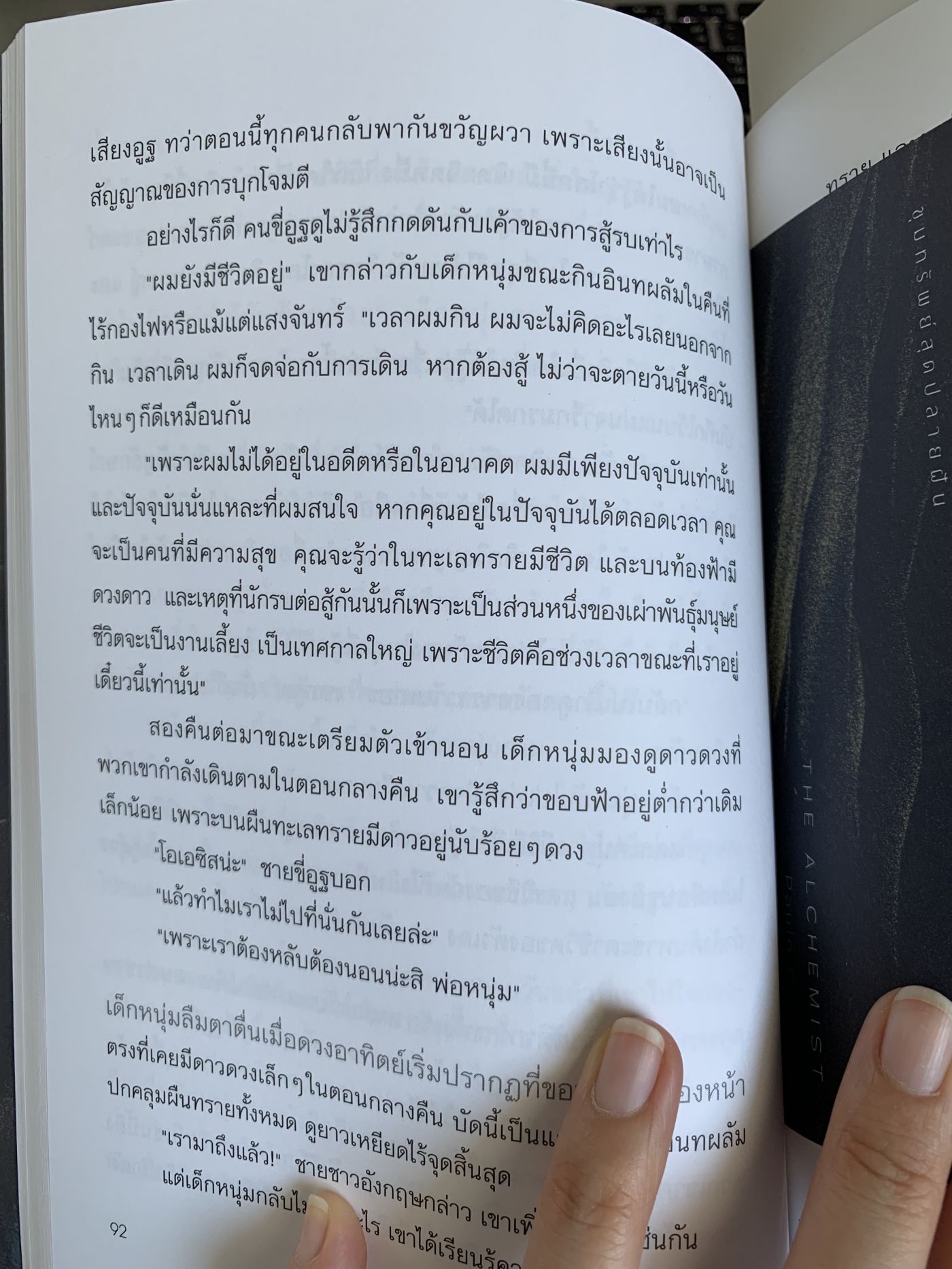 THE ALCHEMIST หรือแปลตรงตัวว่า นักเล่นแร่แปรธาตุ เป็นหนังสือเล่มบางเพียง 167 หน้า ที่เป็นหนึ่งในหนังสือที่โอปราห์ชื่นชอบขนาดที่ซื้อแจกเพื่อน ซึ่งในเล่มนี้จะเล่าอะไรที่ไม่ซับซ้อนเลยนอกจากการที่คนๆหนึ่งคนจะไปถึงเป้าหมายเพียงแค่นั้นเอง แต่เรื่องราวระหว่างการเดินทางนี่สิ ที่ทำให้เรารู้สึกทึ่ง และมันสามารถโยงถึงชีวิตมนษย์ทุกคนบนโลก ดูเหมือนโม้ แต่ที่จริงถ้าคุณลองไปอ่าน แล้วจะรู้สึกเหมือนกับเรา และก็จะเริ่มมีความรู้สึกอยากซื้อให้คนอื่นอ่านเหมือนโอปราห์ก็เป็นได้ (ฮ่าๆ)