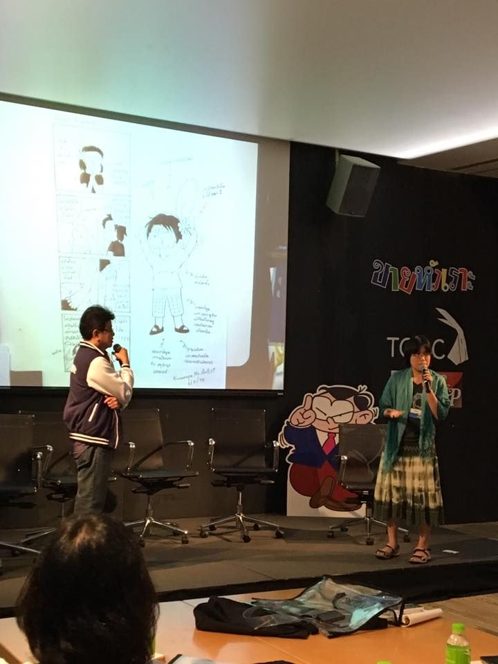 นอกจากปวดฉี่หนักแล้ว วันนี้เป็นวันที่หลายอย่างมันวนอยู่ในหัวเยอะมากที่สุด เพราะมันปะทะกับความคิดความเชื่อเดิมของเราที่มีต่อการ์ตูนแก๊ก วิถีการทำงาน รวมถึงแนวงานที่เราจะก้าวต่อไป ขอบคุณสำหรับแรงบันดาลใจและแนวทางค่ะ
