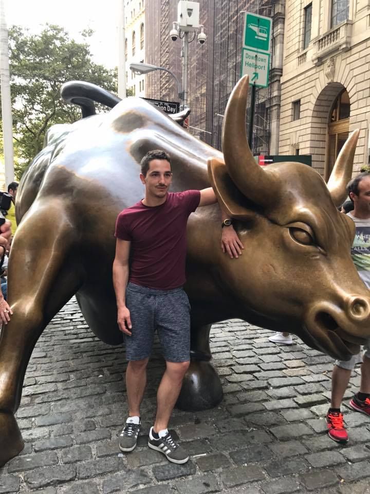 - ไป Rockyfeller หนักไหมจ้ะพ่อหนุ่มมม เป็นรูปปั้นผู้ชายถือห่วงๆ งืมไปถ่ายกับนางเพราะนางยืนคนเดียวเหงา555555 เดินอีกเดินๆ- ไปจับไข่กระทิง (Charging bull) ใช่มึงกระทิงหนึ่งตัวยืนอยู่ท่ามกลางฝูงมนุษย์ชาติตั่งต่างงงงที่รุมจับไข่และเขานาง พีคเว่อกูเดินมาเพื่อถ่ายรูปกับไข่นาง แต่!! ไม่ได้ถ่ายได้ง่ายๆนาจาาา นางพ็อพพูล่าเว่อคนนึงถ่ายเสร็จต้องรีบพุ่งตัวเข้าไปเพื่อให้ได้ถ่าย ออกตัวช้าไม่ได้นะจ้ะแขกกับจีนนี่พร้อมแทรก นี่ยืนมองหน้ากับฝรั่งผัวเมียที่ยืนรอถ่ายประมานครึ่งชมได้ สบตากันแล้วกรอกตาบนแบบไม่ได้นัดหมายเหี้ยๆ หลังจากแทรกตัวไปจับเขากระทิงได้นั้นมึงมองมามึงจะเจอกล้องนับพันที่เล็งมาที่มึง ประหนึ่งมึงเป็นพรีเซนเตอร์เมเบลลีนนิวหยวก สัด!!มึงจะยกกล้องขึ้นมาถ่ายหน้ากูทำไม งง กูยัง งงไม่หาย ฟิลตอนนั้นแบบเขินเว่อ บายกระทิงอีเวร 55555555