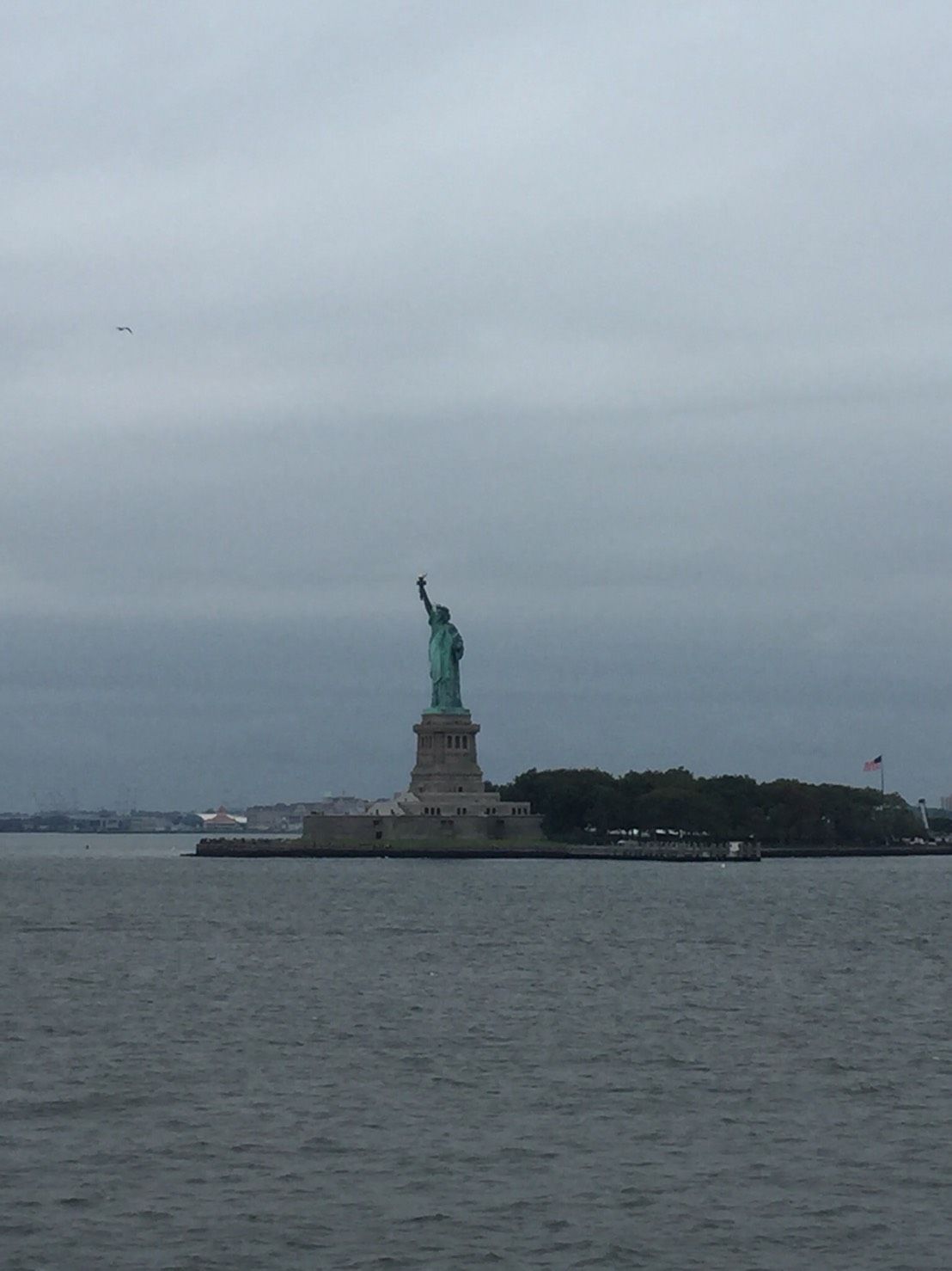 - ละที่ขาดไม่ได้ก็คือคุณเทพี ด้วยความที่งกก็ต้องไปขึ้นเรือฟรีนะจ้ะ ที่ Staten island ไปหานางสักหน่อยเดี๋ยวจะหาว่ามาไม่ถึงต้องไปเยี่ยมนางซะโหน่ย เพราะนางยืนโดดเดี่ยวกลางทะเล อะขึ้นเรือลุยๆๆ ลมแรงเว่อหนาวชิบหาย ฝนปอยๆไม่รู้นางจะป่วยมั้ยยืนตากฝนนาน คิดในใจต้องเอาพาราไปให้นางให้ได้!!! นั่งๆไปเอาแล้วเห็นนางชัดแล้วเริ่มใกล้ๆ วู้ววๆๆ ตื่นเต้นได้สักพักอะเรือวนกลับ... เซลฟี่กับแม่งนึกว่าเสาสีเขียว โอ้ย บายยยโชคดีมึง