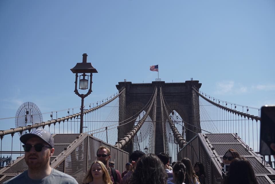 - Brooklyn bridge สะพานลูกแบคแฮม อีห่าคนเป็นล้านเดินกันไปบนสะพาน อะจะถ่ายรูปอีเจ๊นี่ก็ตัดหน้า อีเจ๊นั้นก็จะเดิน สรุปไม่ได้รูปดี มันก็คือสะพานสะพานนึงที่มีเส้นๆไรไม่รู้เยอะหน่อย แต่สิ่งดีๆคือระหว่างทางเราจะพบปะกับผู้ชายมากหน้าหลายตา ดี!! ดีเว่อ!!! เดินเป็นกิโลยังไม่เหนื่อย กำลังใจดีเว่อ5555555 อะความพีคที่หนึ่งเดินไปเจอผัวเมียถ่ายรูปให้กันข้างๆ ละแม่งติดเฟรมนี่ก็สาระแนปากไว ถ่ายไม่สวยเลยอีดอก กูกดเล่นๆยังสวยกว่าอีก อ่ะนางหันมาจ้า คนไทยจ้า!!!! เงิบไหมล่ะมึงงงง นี่แหละกูหักคะแนนมึงเลยนิวยอร์ค มึงไม่ปลอดภัยสำหรับกู555555 มูฟสิอีดอกมูฟๆๆๆ