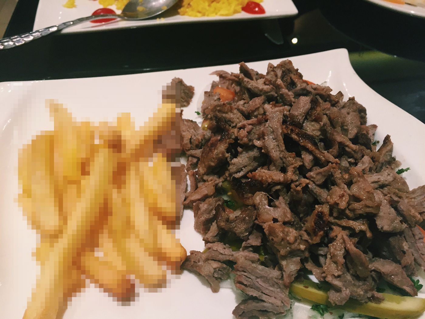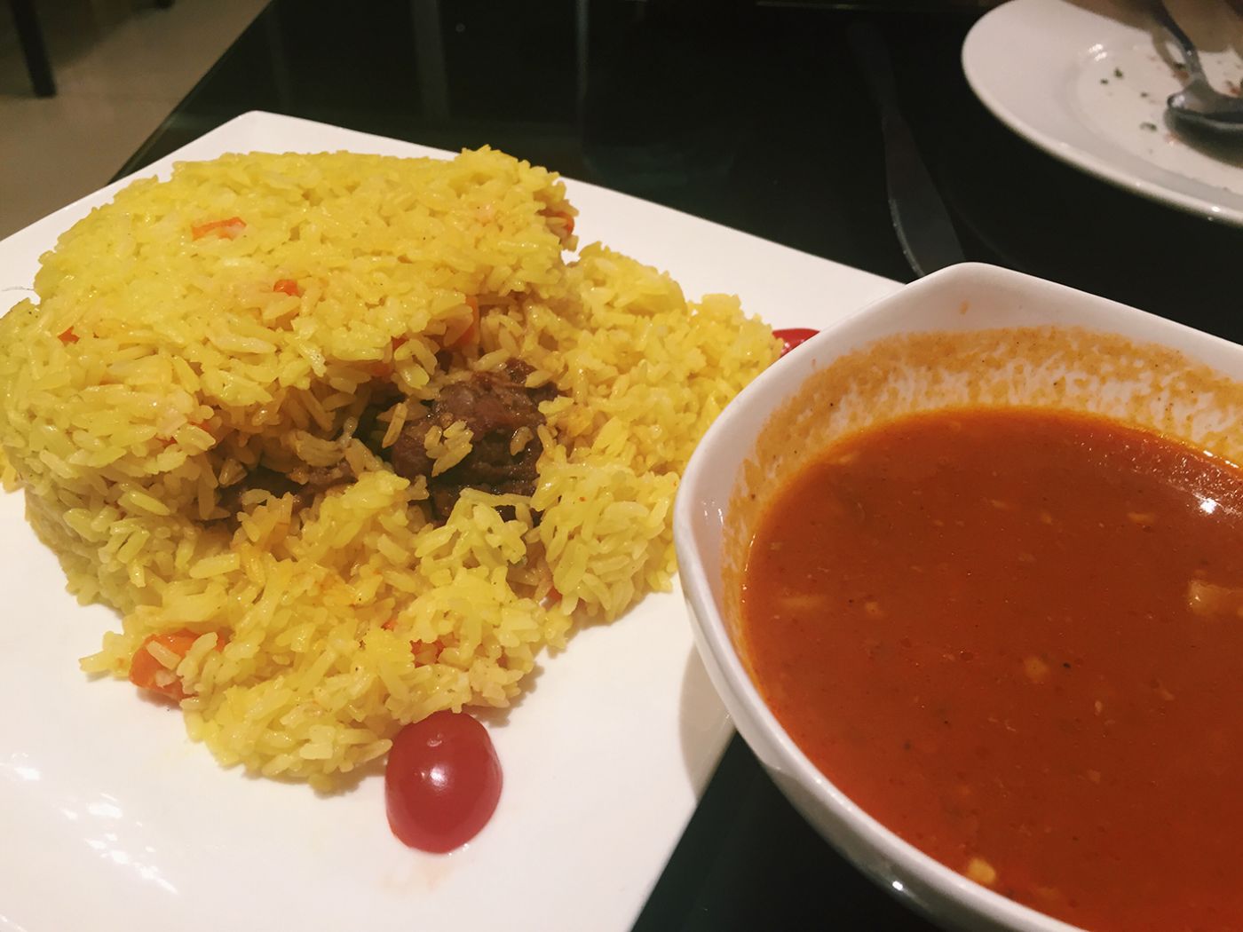 ที่พลาดไม่ได้คือ Yellow rice with beef ข้าวอบเนื้อและสตูว์ (เมนูเพลย์เซฟ 5555) จานนี้ส่วนใหญ่นิยมทานเป็นเนื้อลูกแกะ ดูคล้ายข้าวหมกแต่กลิ่นไม่แรงเท่า