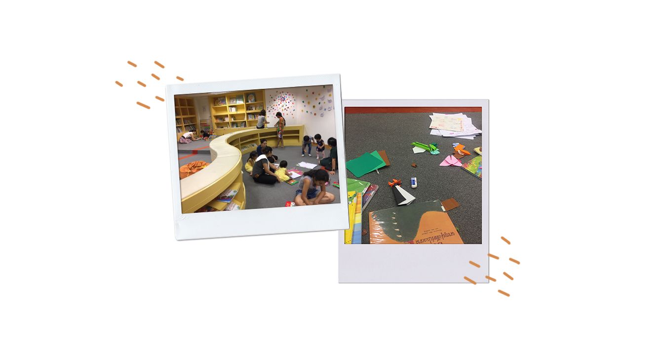 วันนี้พวกเราก็ไปประจำการที่มุม Kid's Corner เหมือนเดิม ในช่วงเช้าไม่ค่อยมีเด็กมา พวกเราจึงไปพักกลางวันกัน แต่หลังจากกลับมาที่ห้องสมุดก็พบกับเด็กเล่นเต็มมุม Kid's Corner เลย (กรี๊ด) เด็กประมาณ 10 คนไม่รวมผู้ปกครอง ;-; พอเห็นดังนั้นพวกเราก็รีบไปเก็บของแล้วไปที่ Kid's Corner ทันที เด็กเยอะมาก ๆ เยอะมากที่สุดตั้งแต่มาฝึกงานเลย ซึ่งเราก็ได้รู้เหตุผลแล้วว่าทำไมเด็กมาเยอะ เพราะว่าวันนี้ที่หน้าห้องสมุดมีการเปิดงานภาพวาดของเด็ก ๆ วันนี้เด็ก ๆ จึงมาเยอะกันมาก ๆ รวมเด็กที่มามุม Kid's Corner ทั้งหมดมีประมาณ 20 คน ไม่รวมผู้ปกครอง ซึ่งมีทั้งชาวไทยและชาวต่างชาติ วันนี้เราประทับใจครอบครัวคนเกาหลีครอบครัวหนึ่งมาก ในครอบครัวมีคุณยาย คุณแม่ และน้องผู้หญิง 3 คน ทั้งครอบครัวชอบพับกระดาษโอริกามิมาก ๆ เราและน้อง ๆ จึงผลัดกันสอนพับกระดาษ น้องพับกันเก่งมาก ทั้งดอกไม้ ชุดฮันบก กล่อง ดาวกระจาย ส่วนเราก็สอนน้องพับเสื้อกับกางเกง คุณยายน้อง ๆ ให้ความสนใจมากจึงมาให้เราสอนพับด้วย มีความสุขมาก ฮือ ถึงแม้จะสื่อสารกันได้บ้างไม่ได้บ้าง แต่ก็ผ่านไปด้วยดี :)