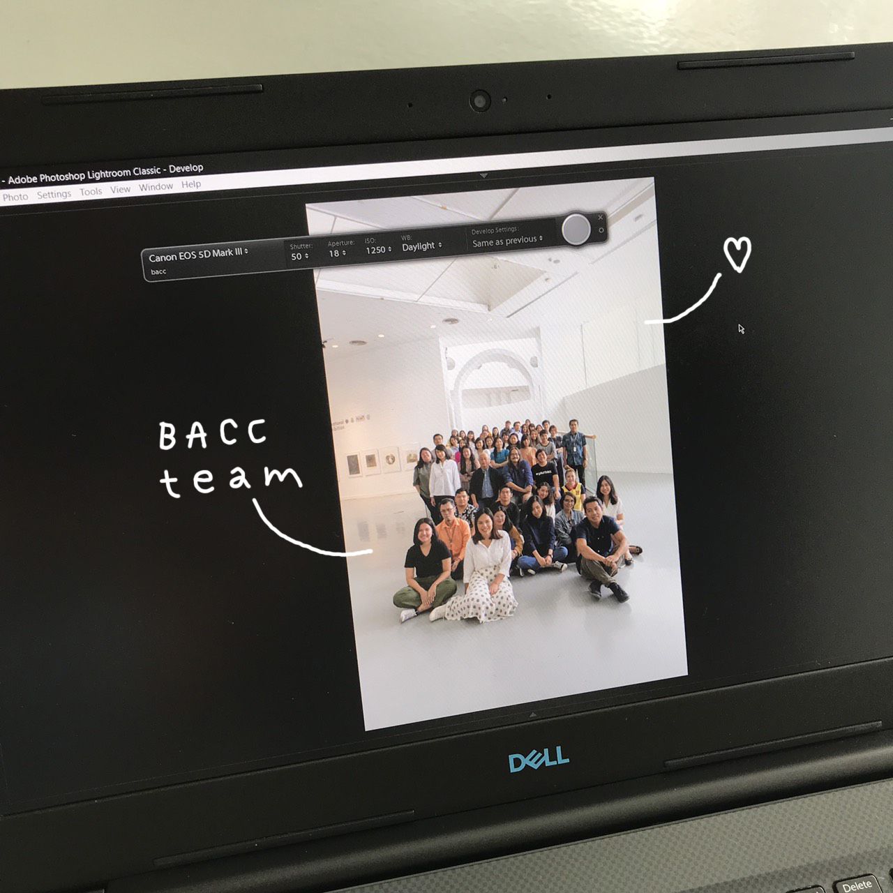 การถ่ายรูปครั้งนี้ทำให้เราได้เจอพี่ ๆ พนักงานเกือบครบทุกคนเป็นครั้งแรก และเป็นโชคดีของพวกเราที่ได้มาฝึกงานที่หอศิลป์ฯ ช่วงนี้พอดี เลยได้มีรูปรวมกับพี่ ๆ ทุกคน เย้ ทำให้ตัวเราเองเริ่มรู้สึกว่าได้กลายเป็นส่วนหนึ่งของที่นี้ไปแล้ว ถึงแม้ว่าจะไม่ค่อยมีบทบาทอะไร เป็นแค่ส่วนเล็ก ๆ ที่ได้มาทำงานที่นี่ เราก็ภูมิใจมาก ๆ แล้ว