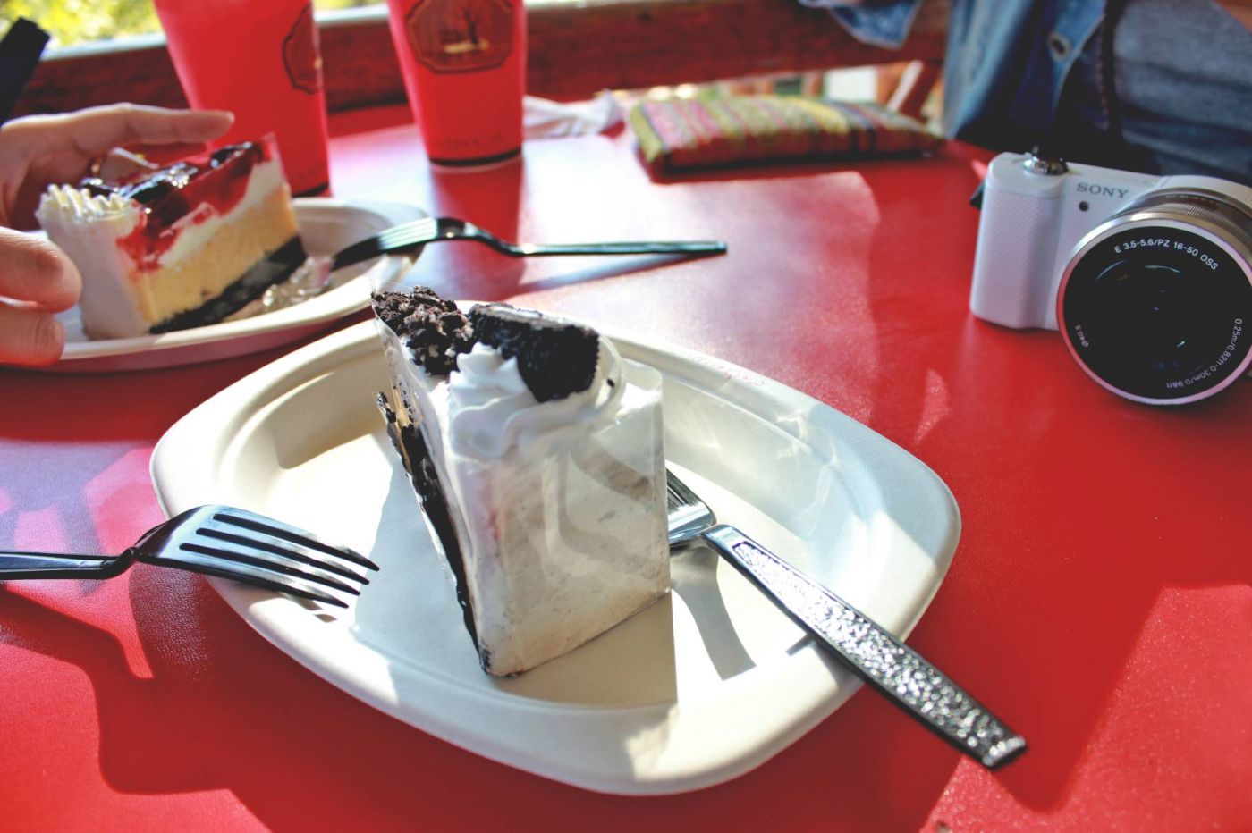 จนเวลาอาหารกลางวันมาถึง เราก็เอาท้องไปฝากที่เดิมคือร้านส้มตำหน้าอำเภอ เป๋นตาเเซ่บมากขร่ะท่านผู้ชม อาหารแซ่บทุกเมนู แต่เมื่อวานบังเอิญสะดุดตากับร้านกาแฟร้านนึงค่ะ กินของคาวเสร็จก็ต่อด้วยของหวานเลย จำชื่อร้านไม่ได้ แต่ร้านตกแต่งด้วยดอกไม้เต็มร้าน เค้กอร่อยมากกด้วย