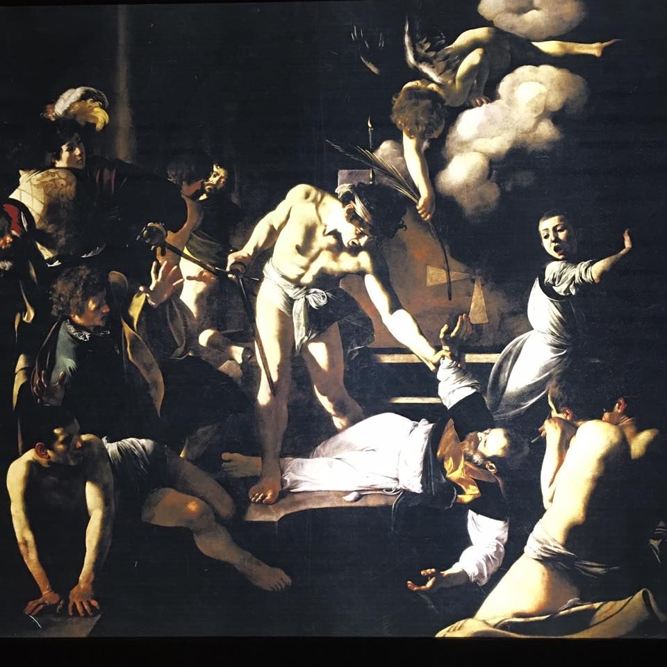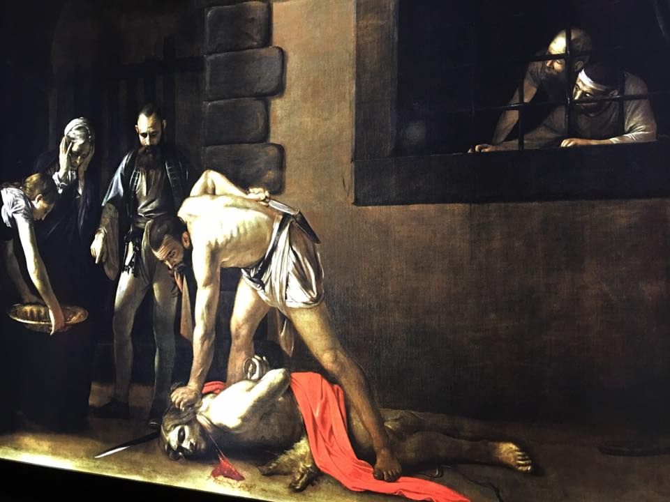 ผลงานที่คาราวัจโจสร้างขึ้นที่มอลต้า และเป็นภาพที่เขาเซ็นชื่อเอาไว้ภาพเพียงภาพเดียวนั่นคือ การตัดศีรษะนักบุญจอห์นผู้ให้บัพติศมา (ค.ศ.1608) ลายเซ็นของเขาจะอยู่ที่เลือดของนักบุญจอห์น ในขณะนั้นคาราวัจโจเป็นอัศวินแห่งองค์การเซนต์จอห์น และผู้พิทักษ์อะลอฟ เด วิกญาคอร์ท ผู้ซึ่งเป็นนายสูงสุดของอัศวิน การวาดฉากภาพนี้โดยให้อยู่บนสถานที่อันทรงเกียรติซึ่งเป็นอาสนวิหารวัลเลตตา นำเกียรติยศมาสู่คาราวัจโจมากกว่าแค่ค่าจ้างที่เขาได้รับ และยังได้รับยศอัศวินในองค์การนักบุญจอห์นจากนายของเขาอีกด้วย แต่หลังจากสร้างความประทับใจให้กับชนชั้นนำในมอลต้า เขาก็ก่อเรื่องทะเลาะวิวาทอีกครั้ง จนต้องทำให้เขาถูกถอดยศ และถูกขับไล่ออกจากมอลต้า แล้วเดินทางไปยังซิซิลี