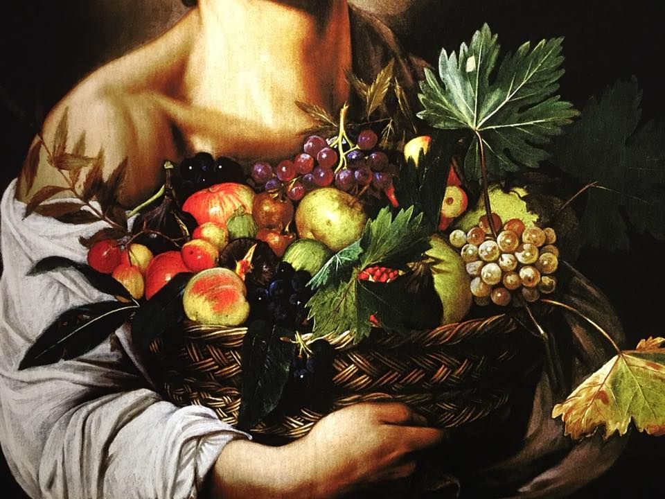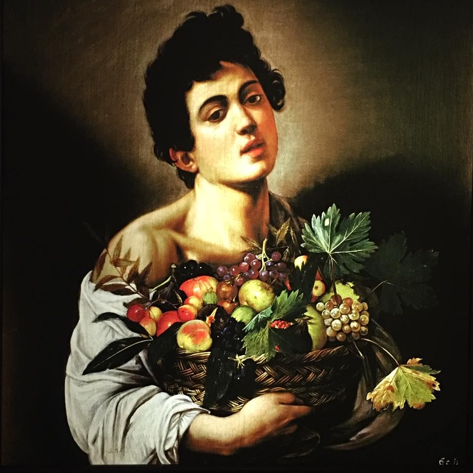 ภาพต่อมาที่เราถ่ายรูปเก็บกลับมาคือ'เด็กชายกับตระกร้าผลไม้' เป็นอีกภาพในยุคแรกๆของคาราวัจโจ ที่พระคาร์ดินัลได้ไปพร้อมกับภาพบัคคัสน้อยไม่สบาย ภาพนี้นักวิจารณ์ต่างยกย่องว่าแสดงความเป็น School of Lombard ได้ดีมากๆ เพราะผลไม้ในภาพมีความเป็นธรรมชาติ อย่างพวงองุ่น ใบไม้ที่มีเชื้อรา ที่ชัดเจนมากๆ จนแทบจะบอกได้ว่าผลไม้สายพันธุ์ไหน